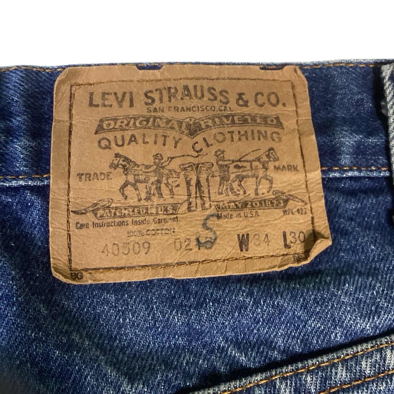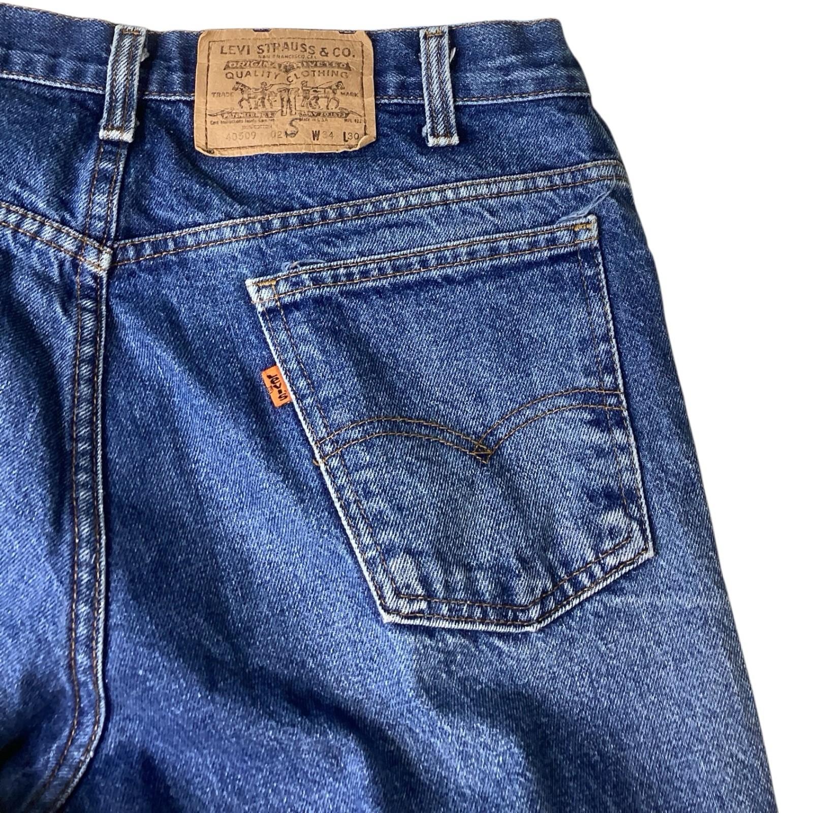 Vtg Levis 40509-0215 Jeans Mens 32/28 Orange Tab Blue Denim USA 80s. VERY GOOD.