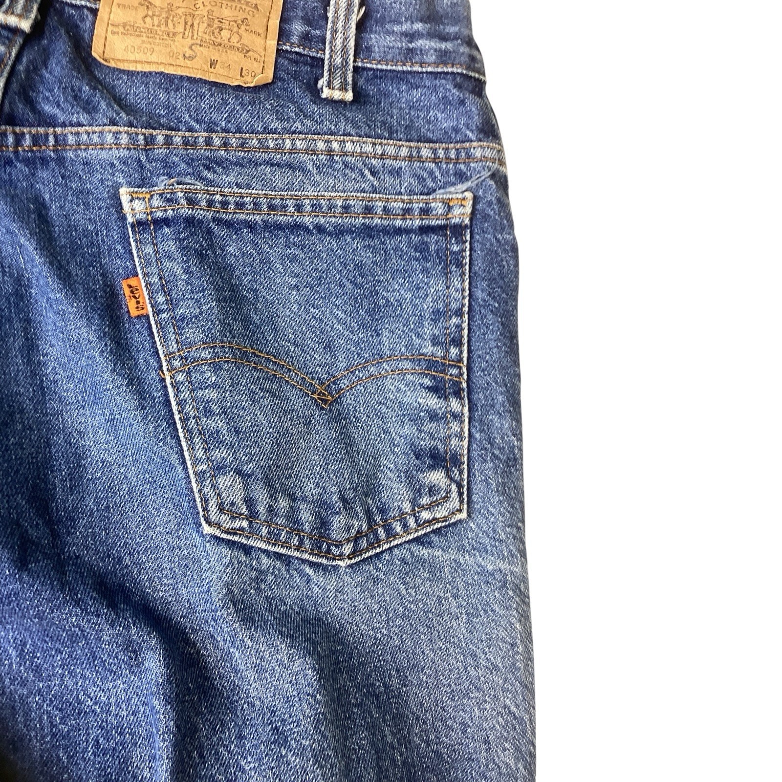 как выглядит Vtg Levis 40509-0215 Jeans Mens 32/28 Orange Tab Blue Denim USA 80s. VERY GOOD. фото