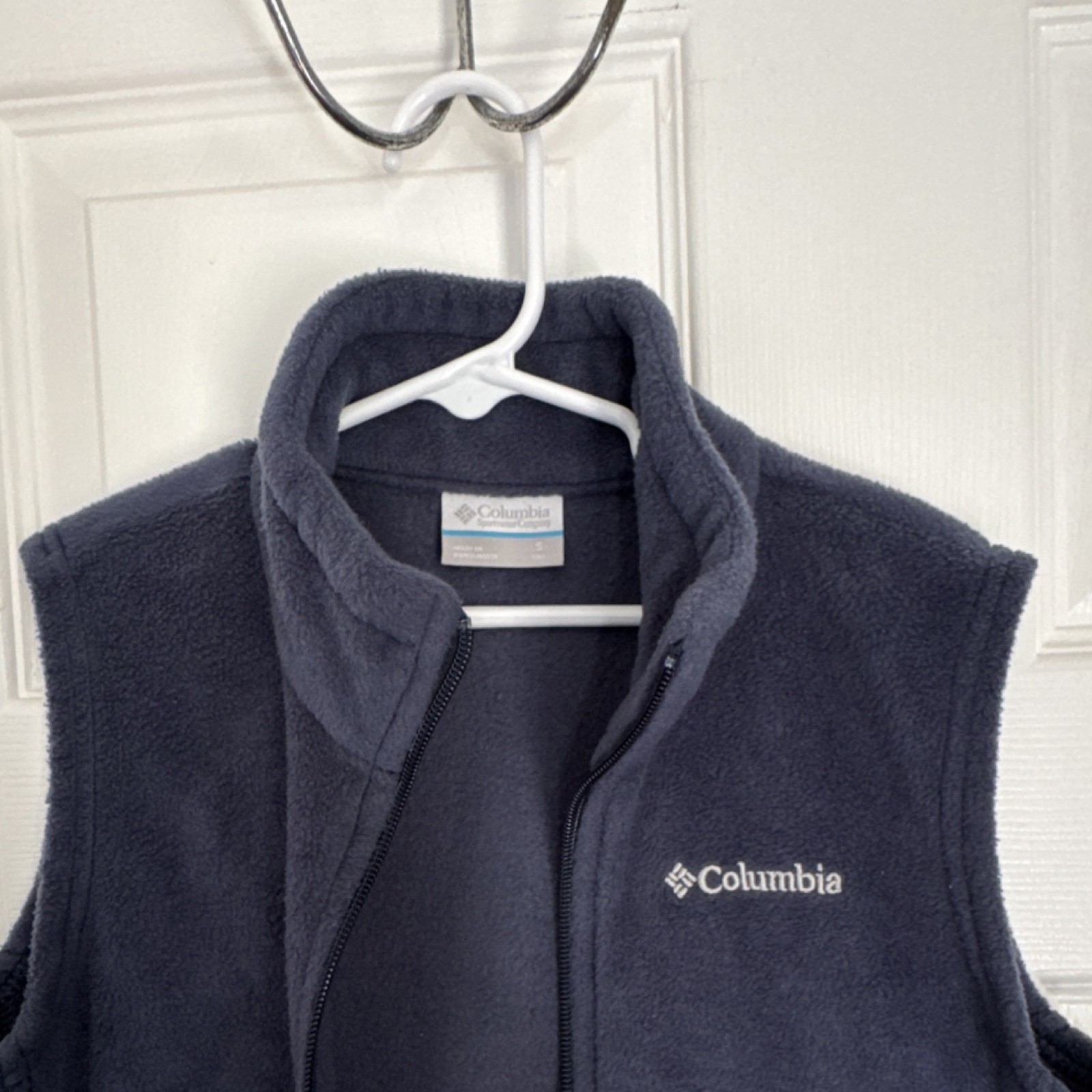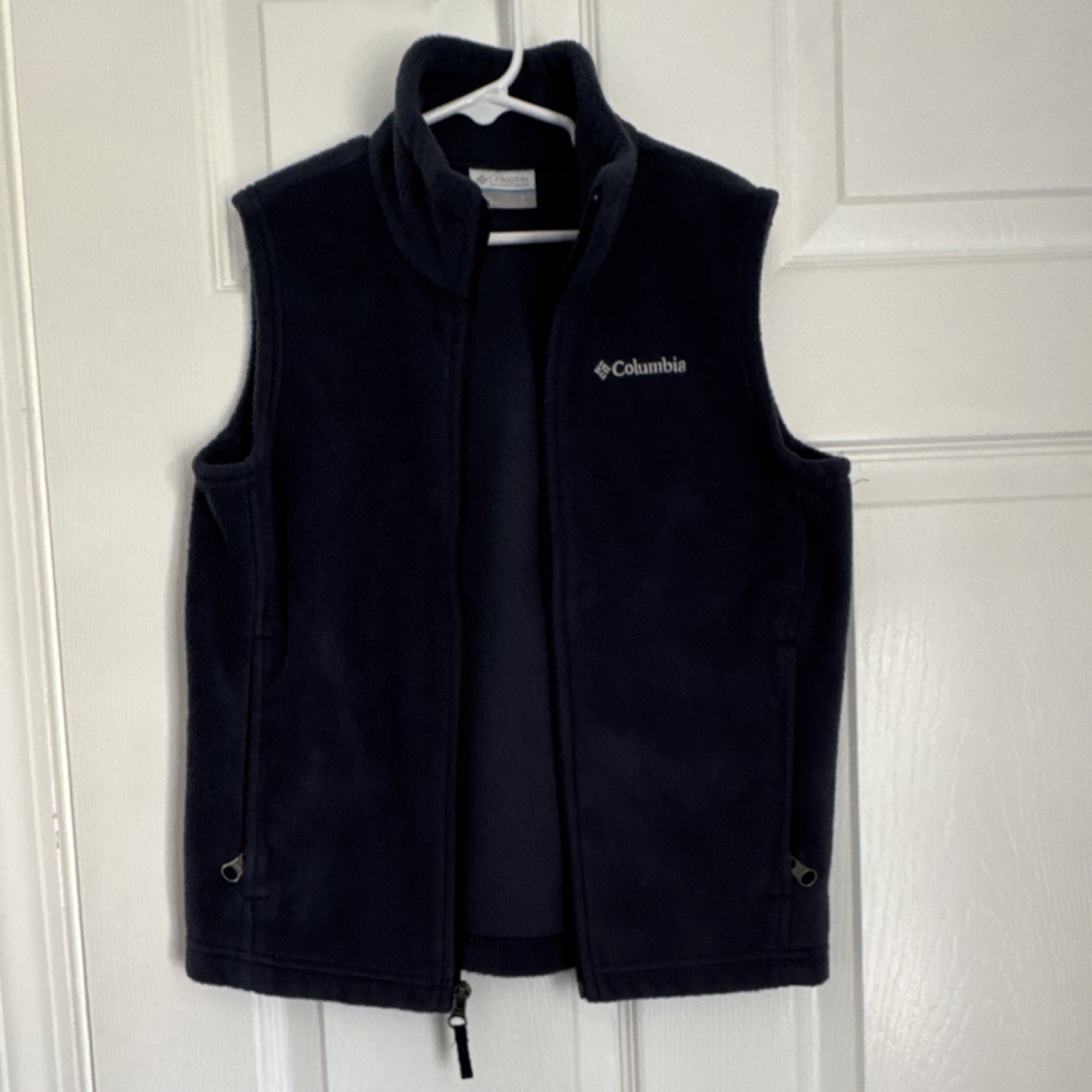 Columbia Boys Fleece Vest Navy Full Zip Pockets Size S Outdoor Polyester