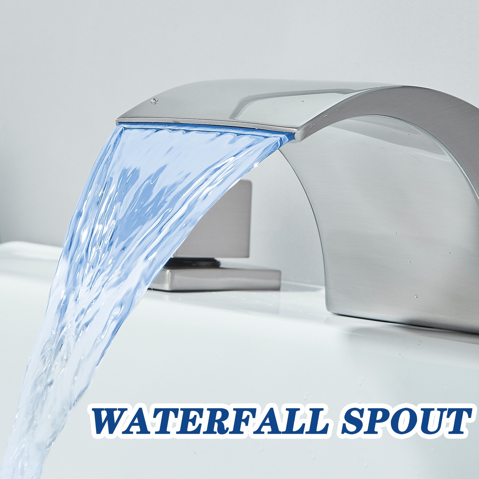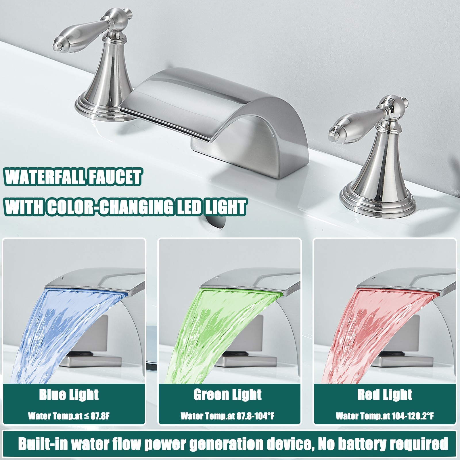 Brushed Nickel LED Bathroom Sink Faucet 3 Hole Widespread Basin Vanity Mixer Tap