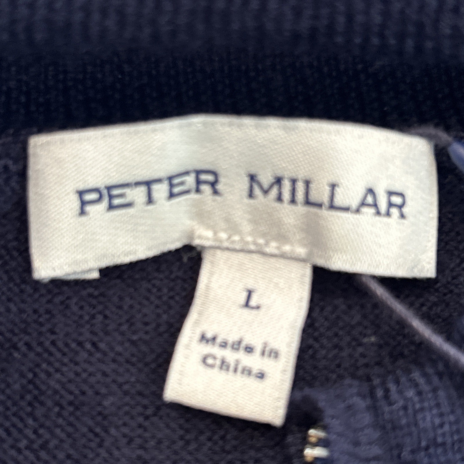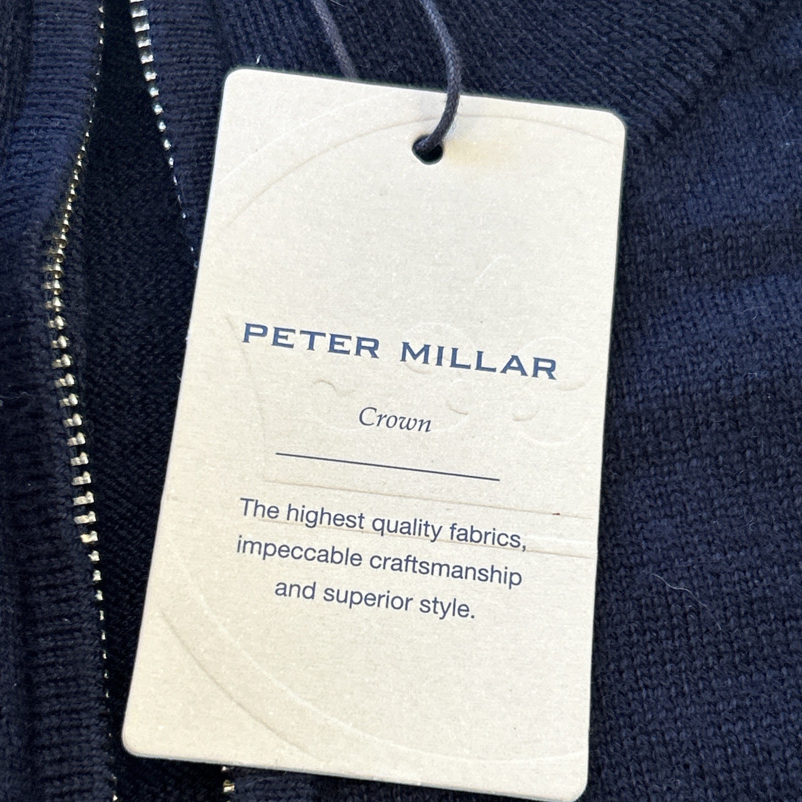 как выглядит NWT Peter Millar Crown Mens1/4 Zip Soft Merino Wool Navy Blue Sweater "A" Logo L фото