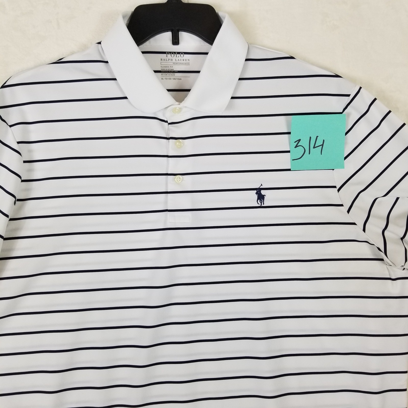 как выглядит Polo Ralph Lauren Performance Mens XL Classic Fit Striped Polo Shirt White Navy фото