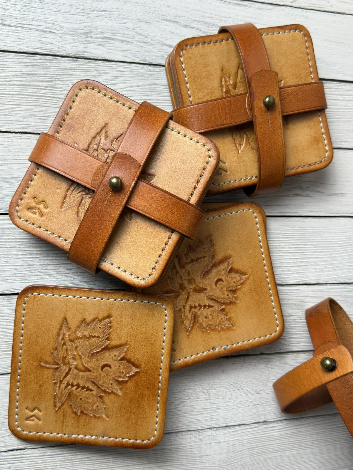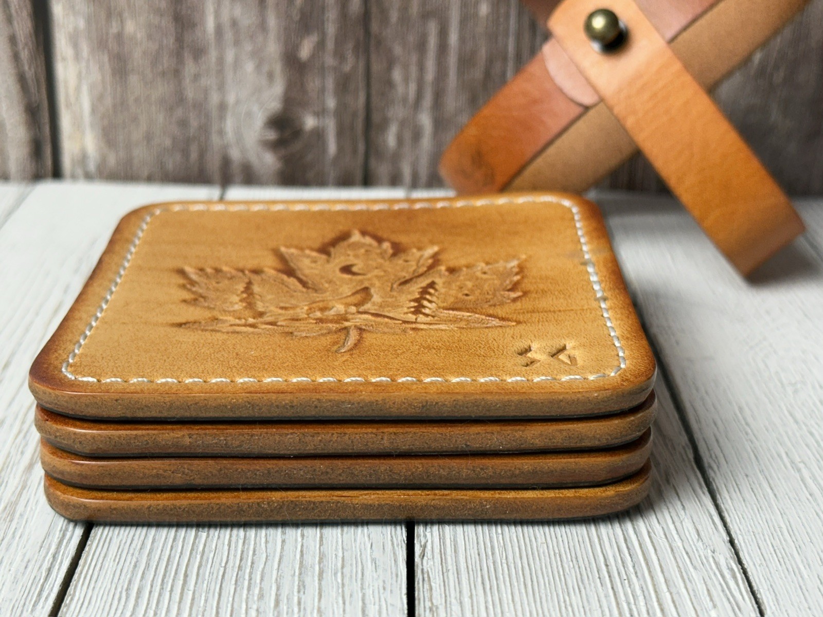 leather coaster set 4 hand crafted