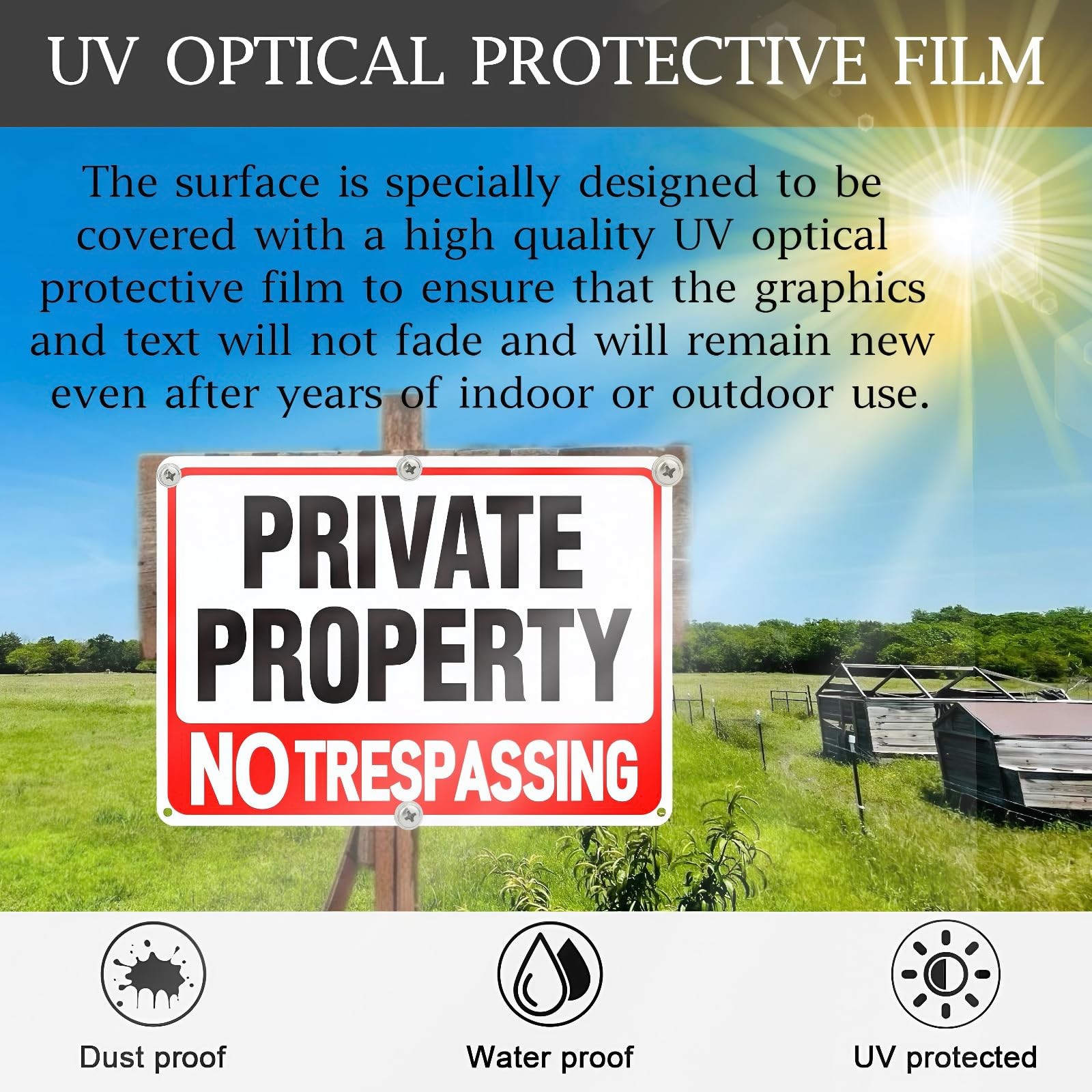 4 Pack Large No Trespassing Signs Private Property, 8x12 Inch Rust Free Aluminum
