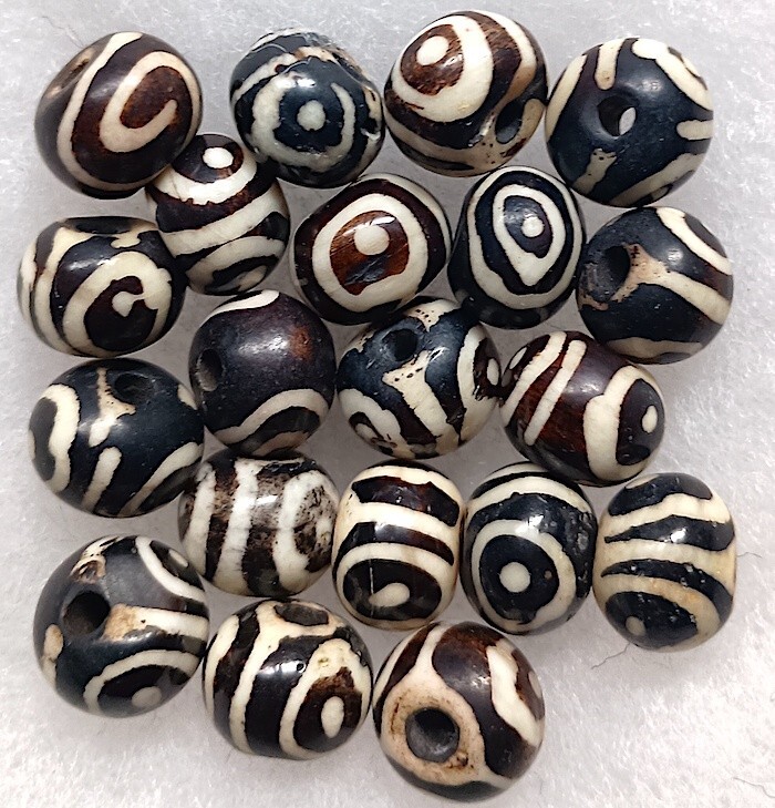 Buffalo Bone Beads, 20 Pcs, Small Near Rounds, Black, Dark Brown with White, 8mm