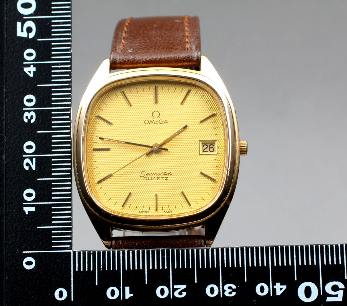 как выглядит w/Box Near MINT Omega Seamaster Cal.1332 Date Gold Quartz Men
