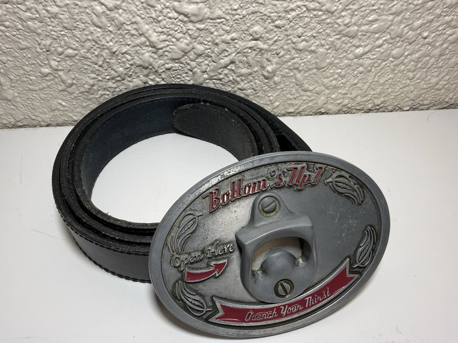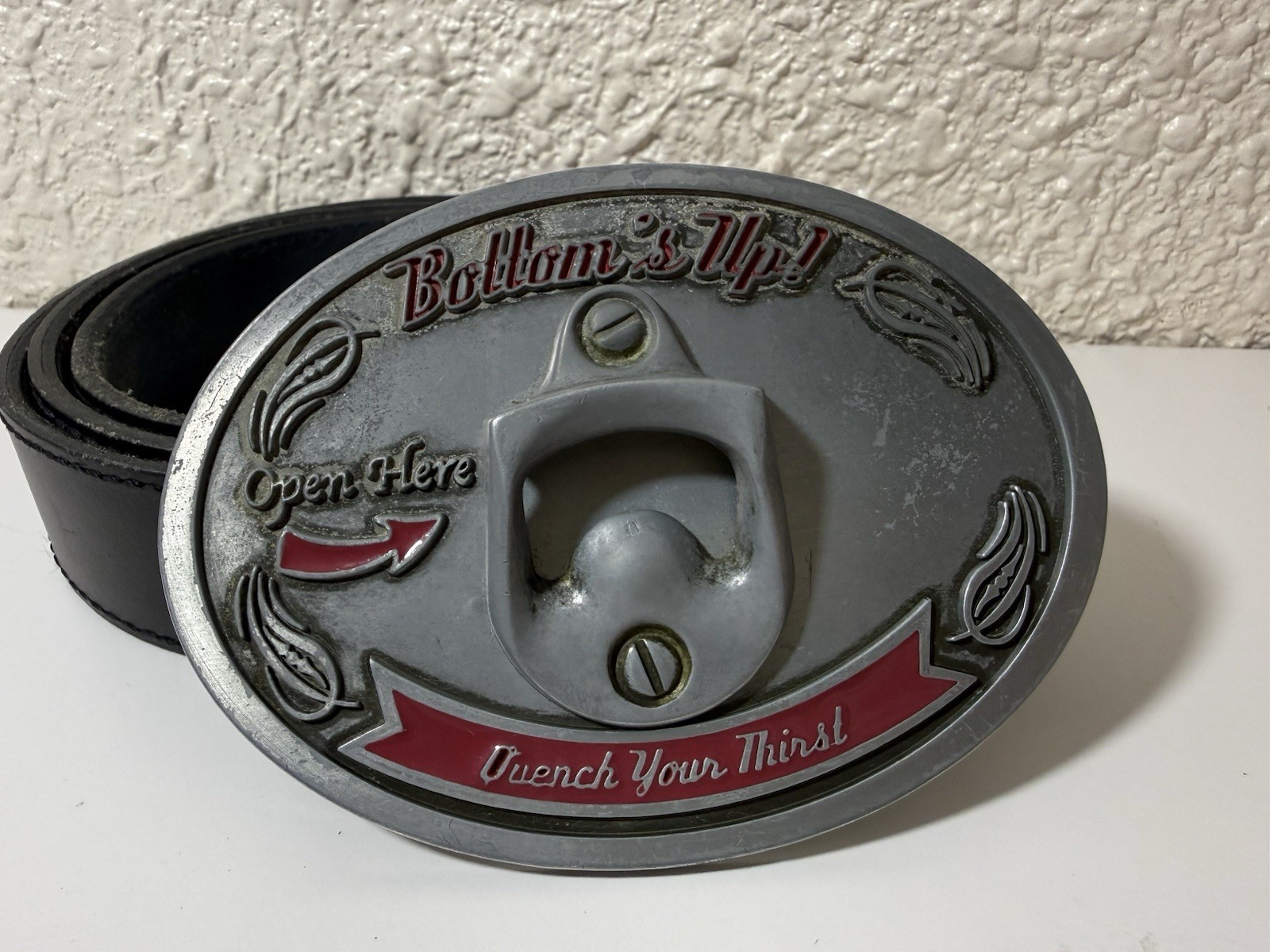 Bottoms Up Quench Your Thirst Open Here Belt Buckle with Bottle Opener 48 Belt