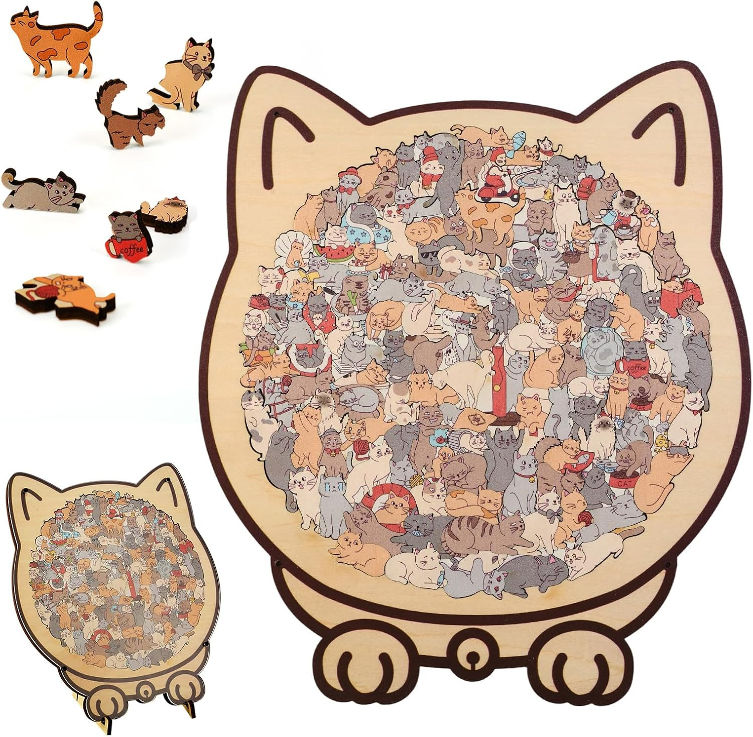 135-Piece Colored Cat Shaped Wooden Jigsaw Puzzle, Cats Shaped Wooden Puzzle, Un