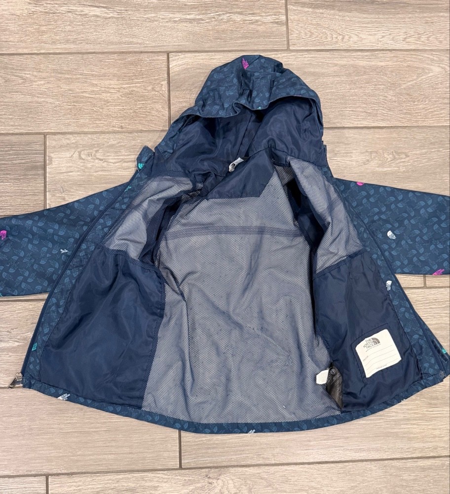 как выглядит Kids The North Face Antora Rain Jacket - Navy Blue Multi-Logo Print - Size 6 фото