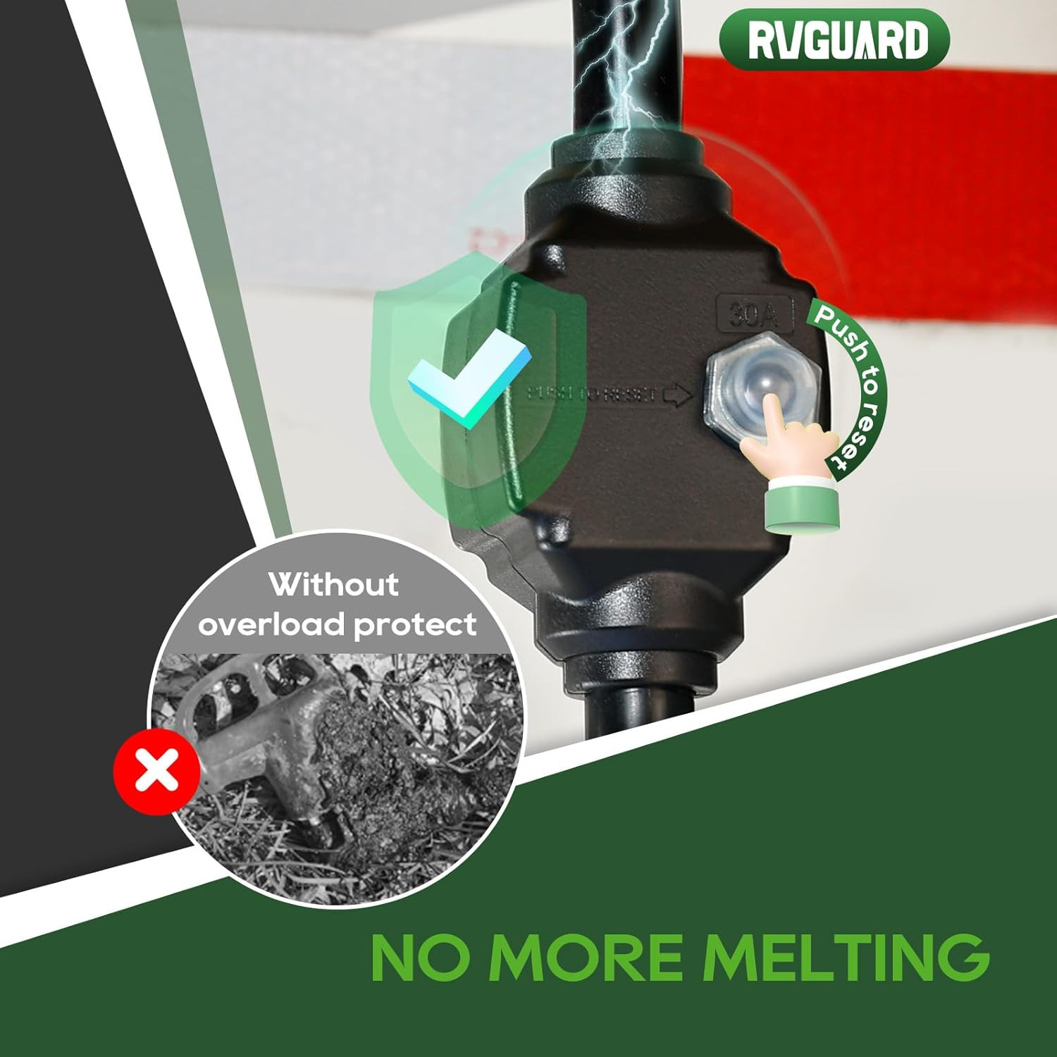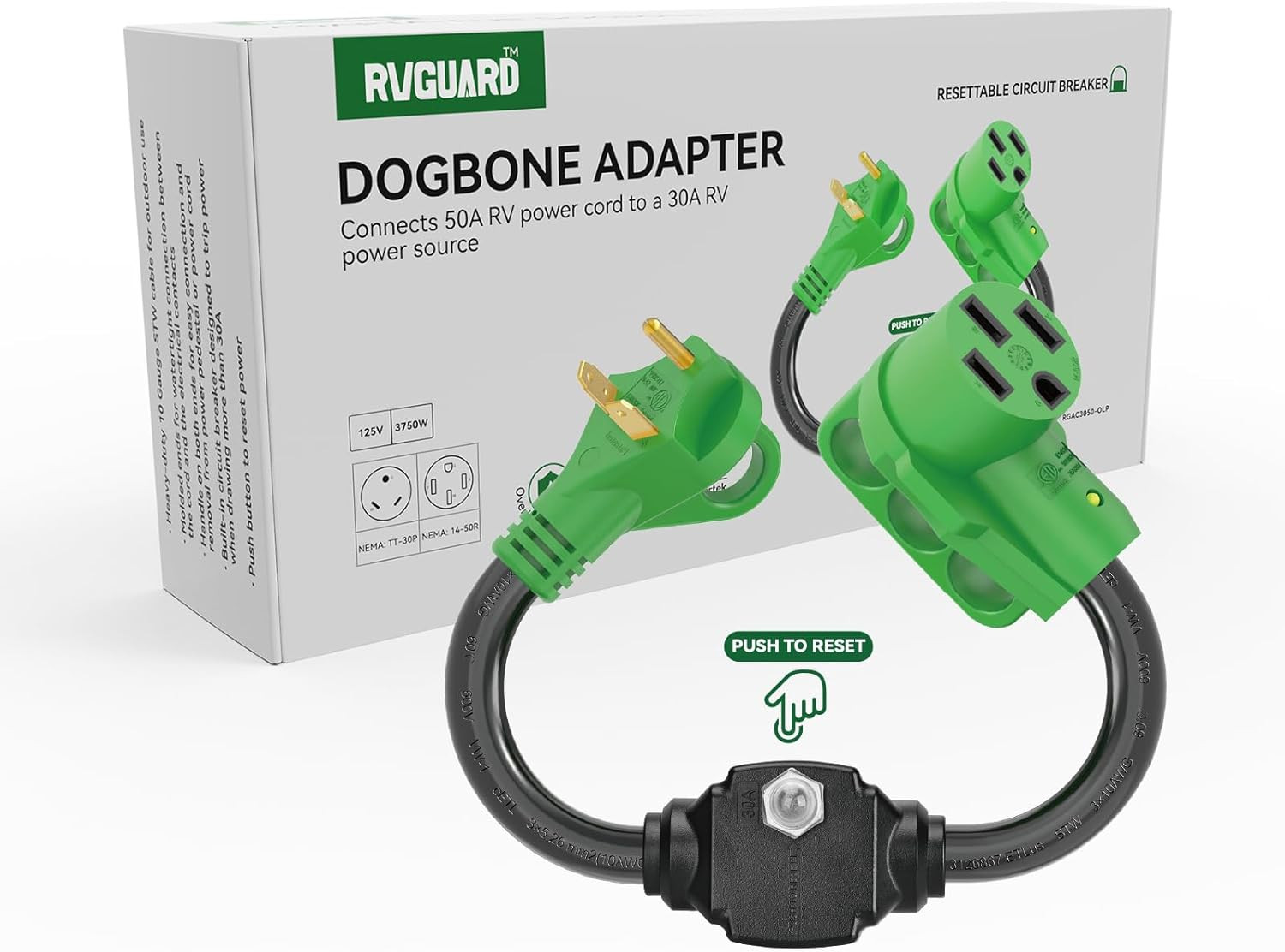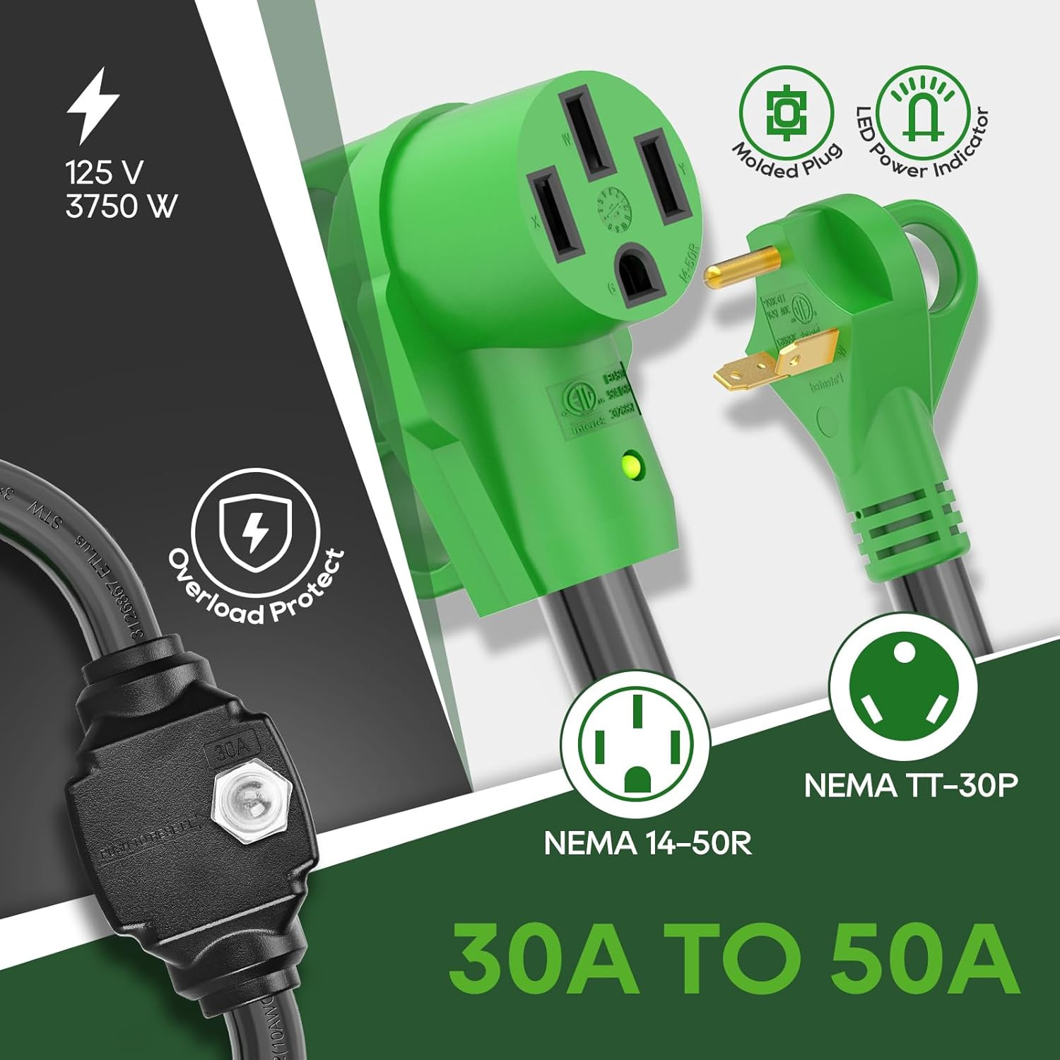 Overload Protector 30 Amp to 50 Amp RV Adapter Cord with Circuit Breaker, NEMA T