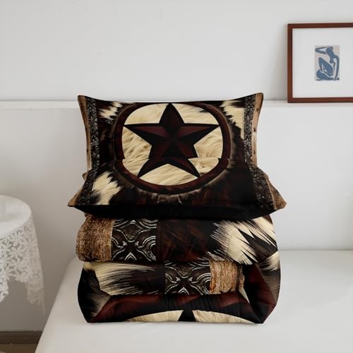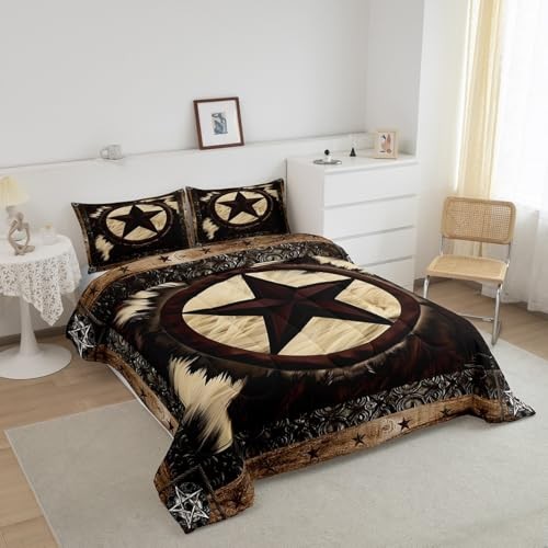 Rustic Cow Print Bedding Sets,Vintage Western Texas Star Queen Color 28