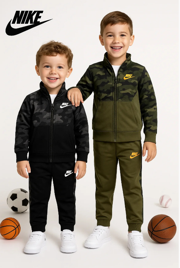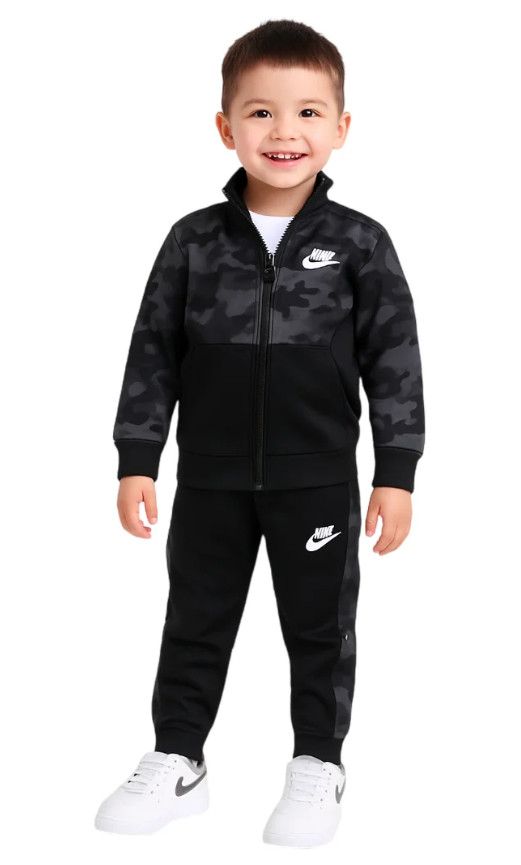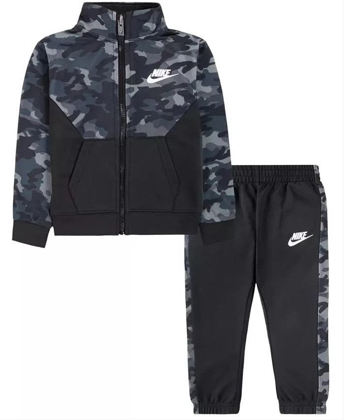 как выглядит Nike Kids Size 7 Therma Dri-Fit Jacket Pants Set Black Camo 2 Piece 76H109-023 фото