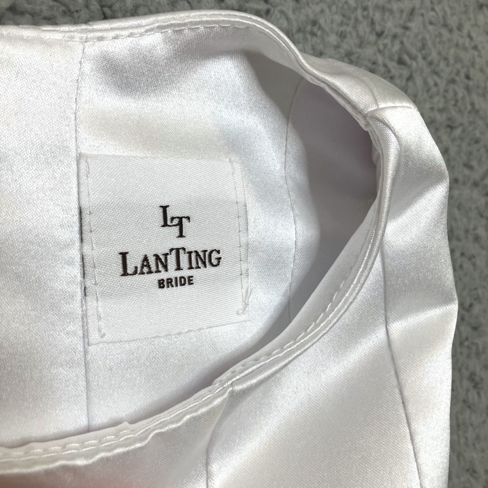 LanTing Bride Formal Dress Girls 10/12 M/L White Satin Bow Flower Girl Communion