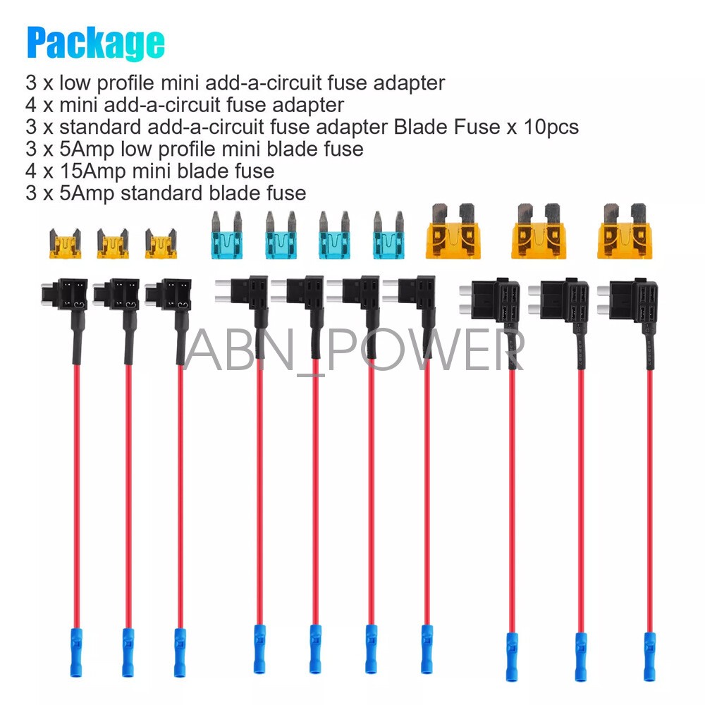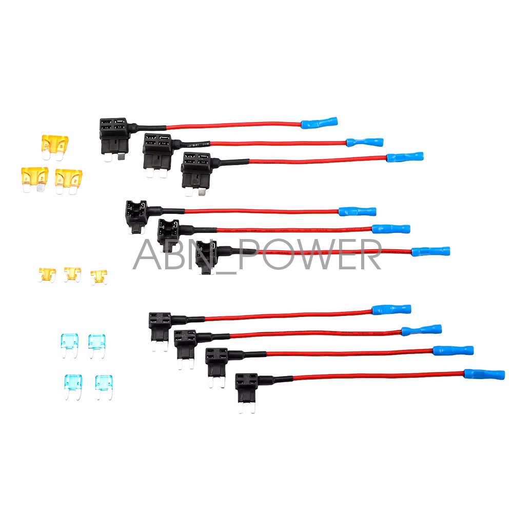 10pc 12V Car Add-a-Circuit Fuse Adapter w/ Standard Mini TAP Blade Fuse Holder