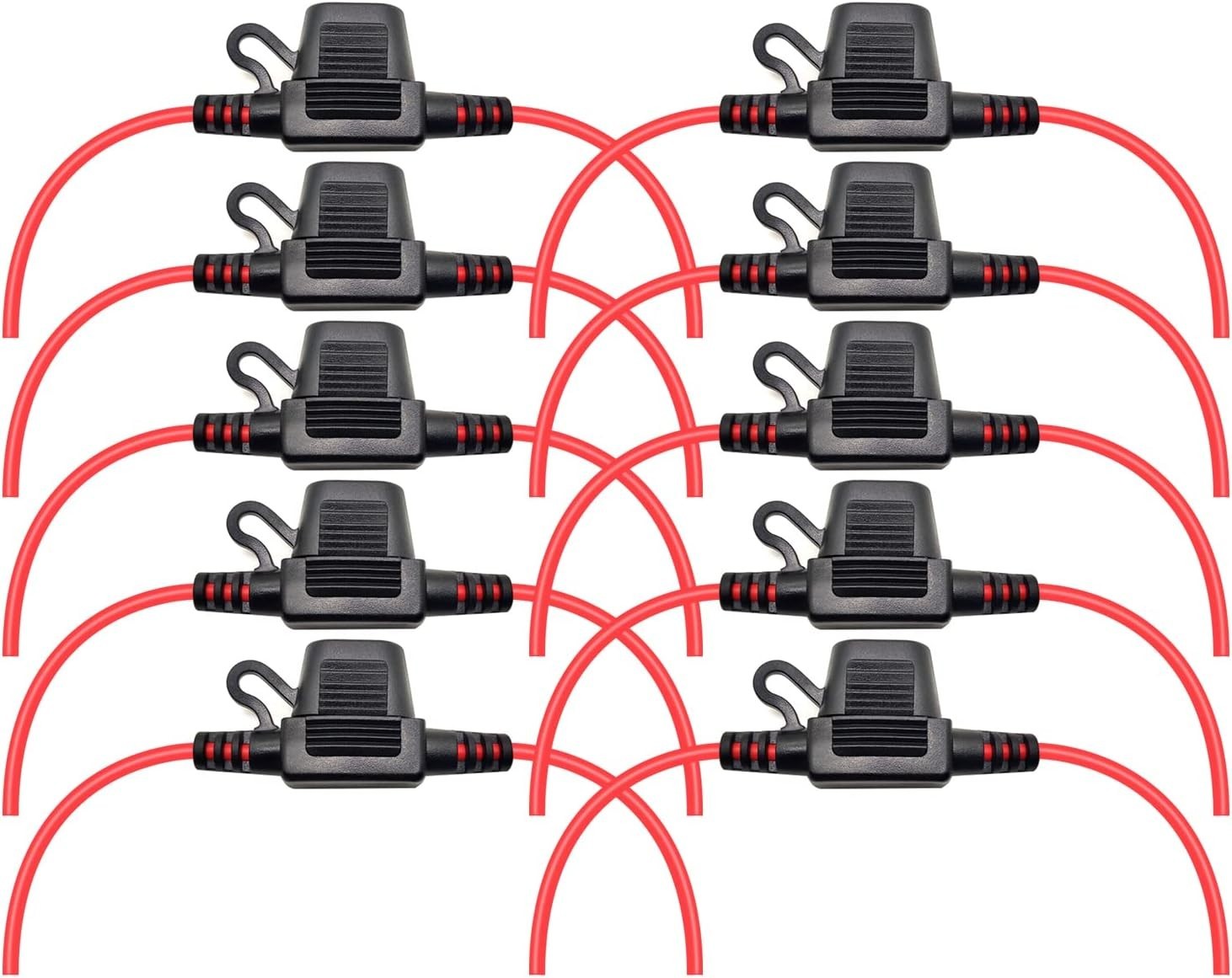 Waterproof Mini Inline Fuse Holder With 16 Gauge AWG Wire 12 Inches Long, Fit...