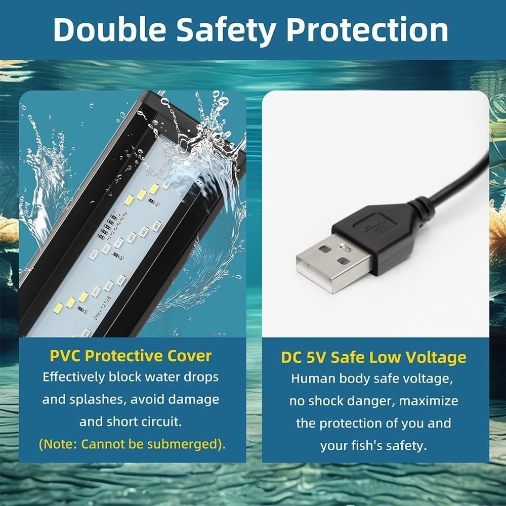 Особенности: Full Spectrum, High Intensity, Color Enhancing, Actinic, Full-Spectrum Lighting System, Three Light Modes, Ten Levels of Brightness, Sturdy and Durable, Double Safety Protection, High-strength ABS Shell, Heat Dissipation, Extendable Bracket, Corrosion-resistant, Impact-resistant, PVC Protective Cover, Safe Low Voltage, One, 24 Hours Customer Service