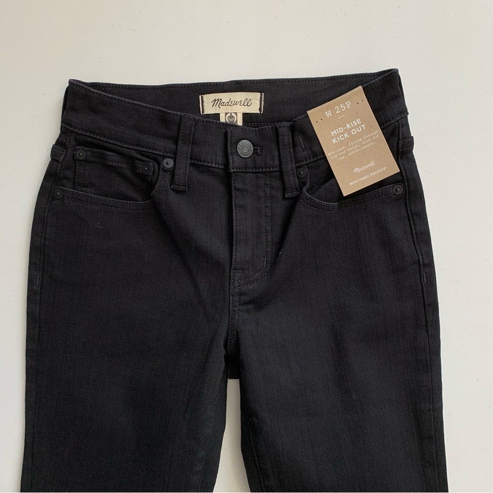 как выглядит Madewell Black Petite Kick Out Crop Jeans Size 25P NWT Mid-Rise Black Jeans фото