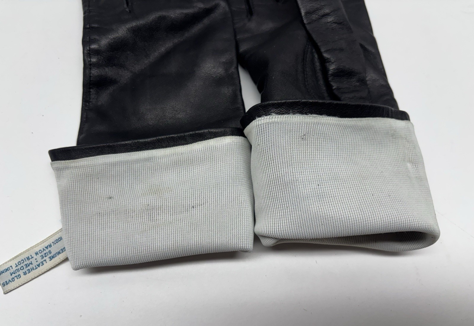 как выглядит Vtg Ladies Made In Japan Black Leather Rayon Lined Gloves S M RN 27219 фото