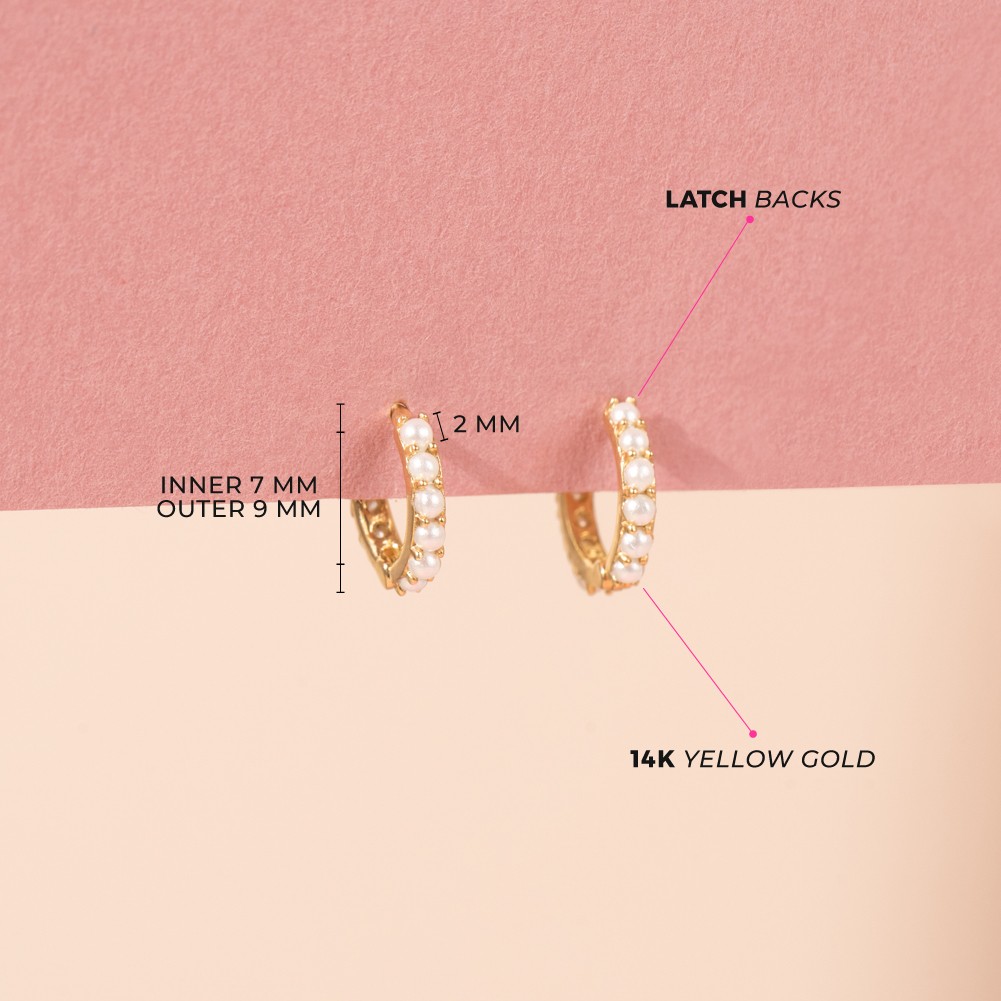 как выглядит Tiny Pearl Huggie 7mm Baby / Toddler / Kids Earrings Hoop - 14k Gold фото