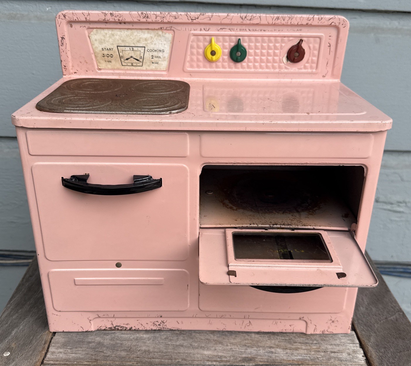 1950's Vintage Empire LITTLE LADY Pink Toy Stove Made In USA Tested WORKS