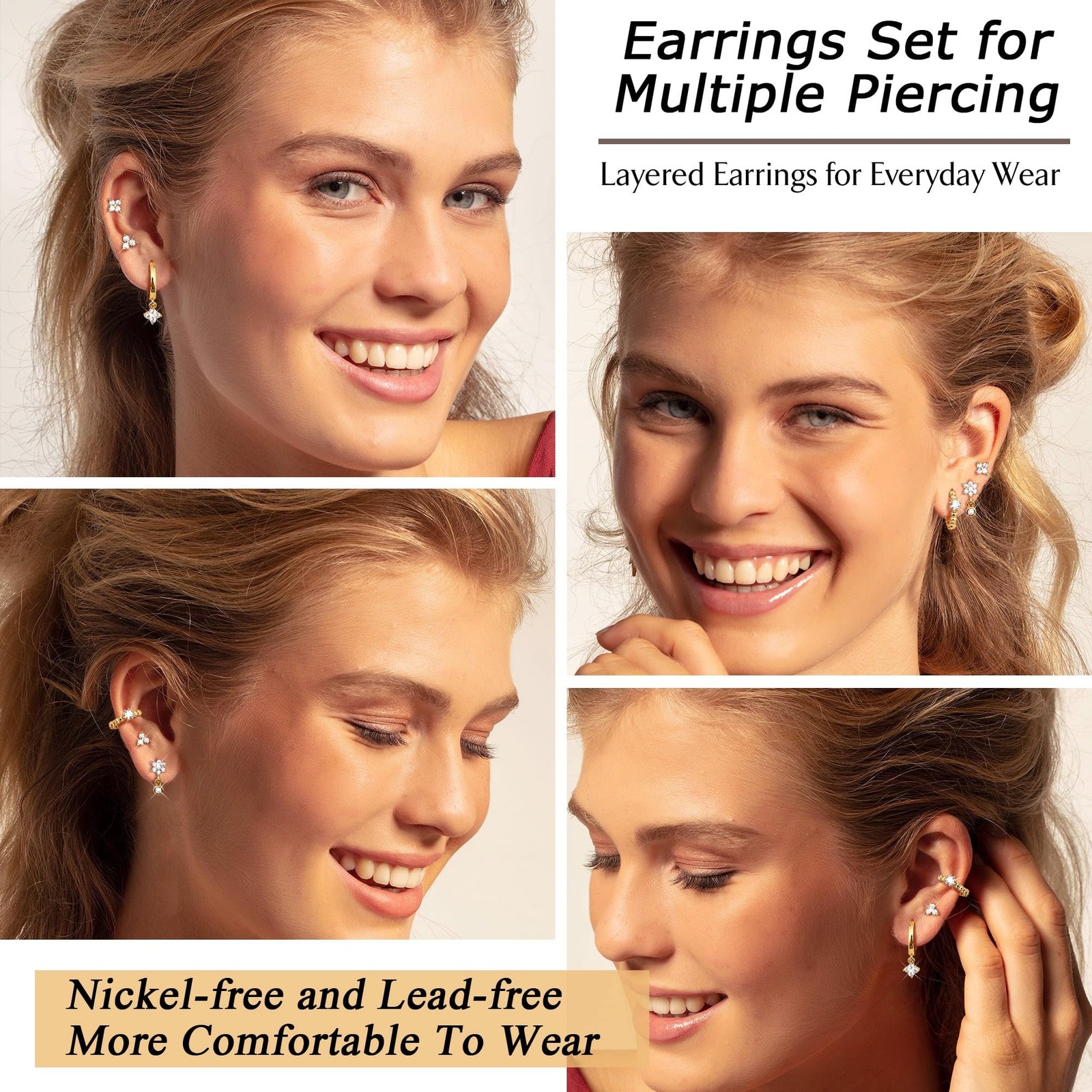 6PCS 14k Gold Plated Hoop Earrings Stacks for Women Trendy Small Chunky Huggie