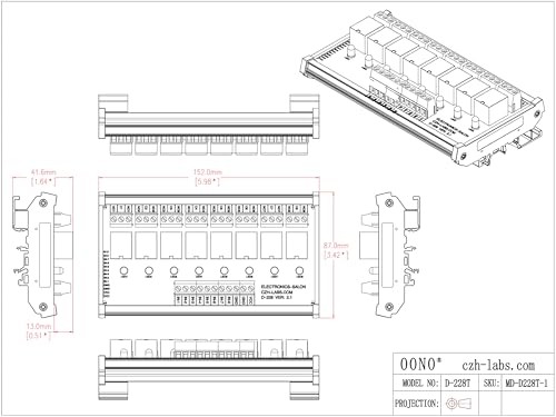 DIN Rail Mount 8 SPDT Power Relay Interface Module. Operating Voltage: DC