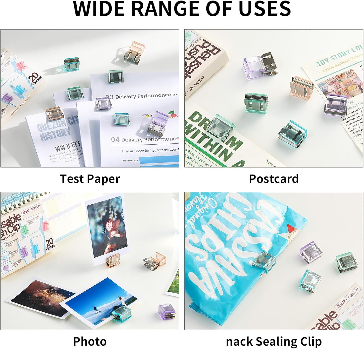 Push Paper Clips Binder Clips, 20 Pack Medium Reusable Heavy Duty Clamps, No D