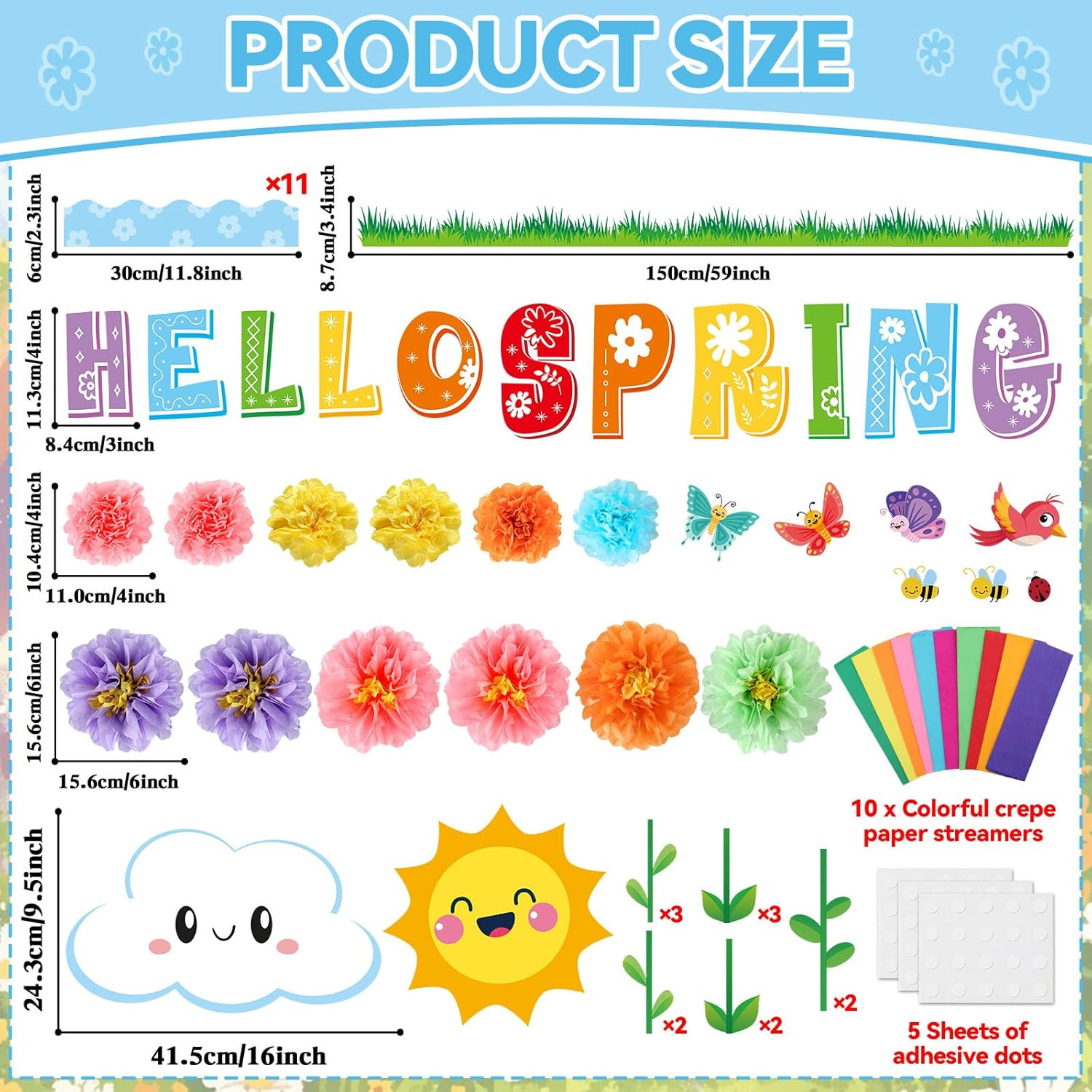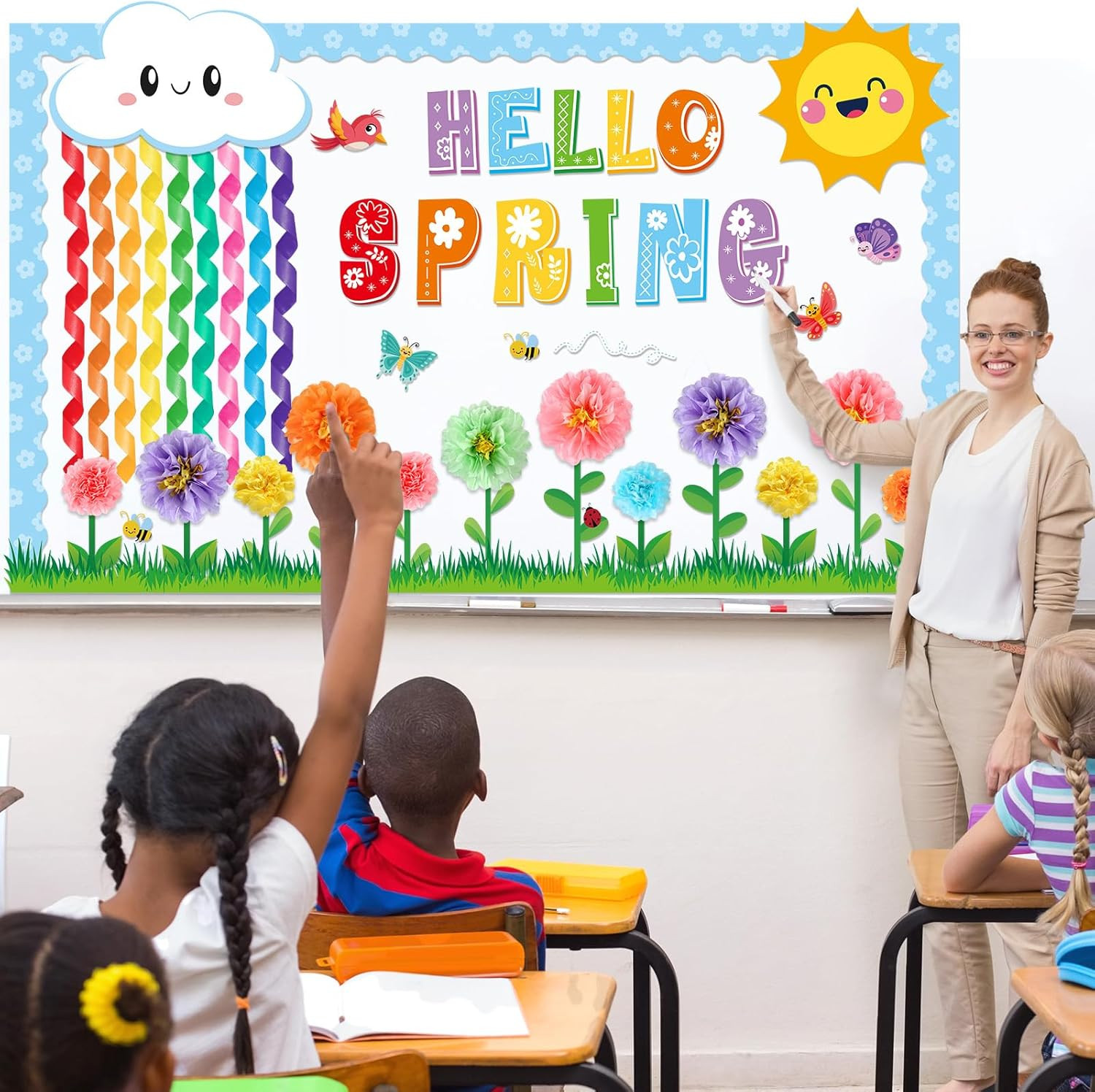 Spring Classroom Bulletin Board Decorations 3D Hello Spring Cutouts Floral Bulle