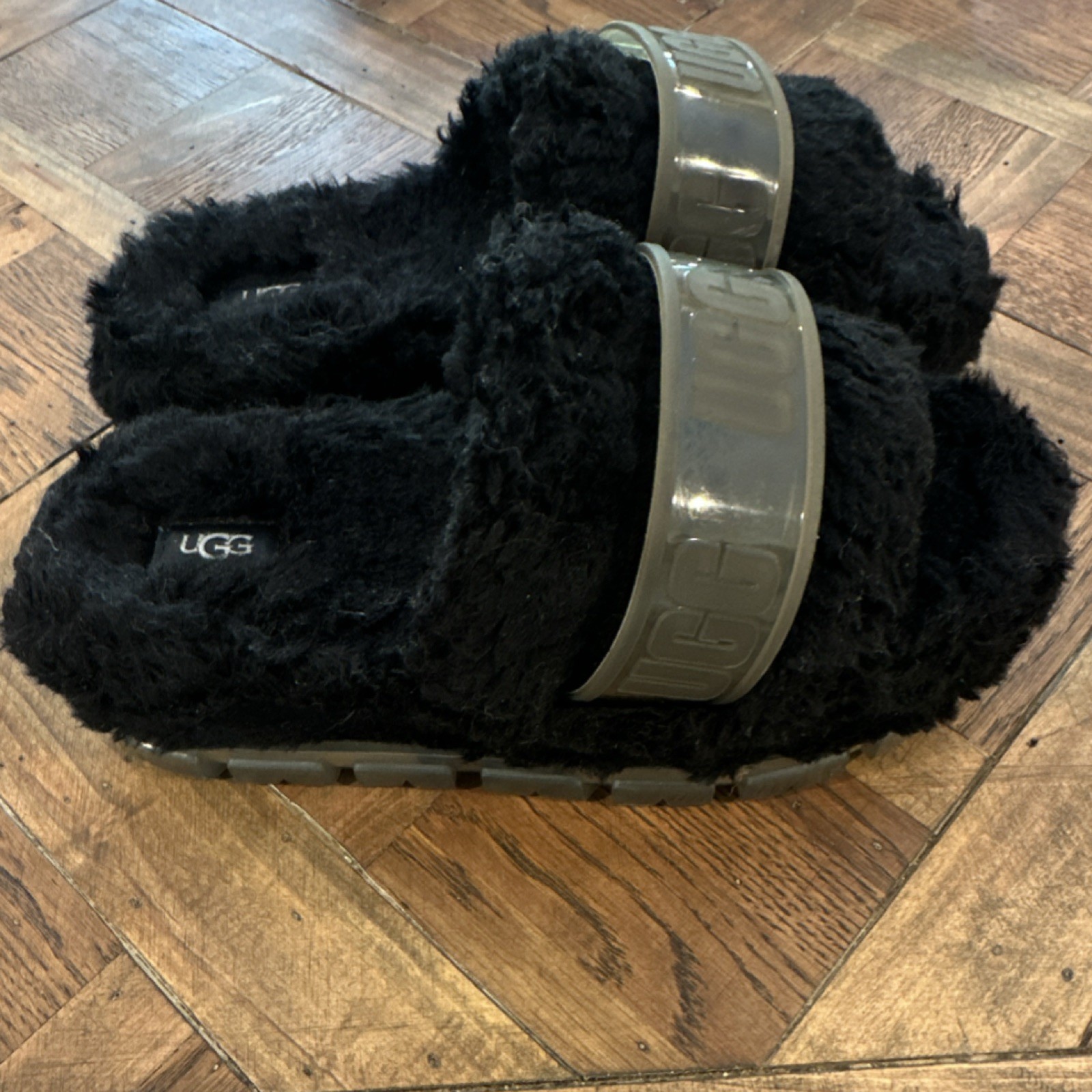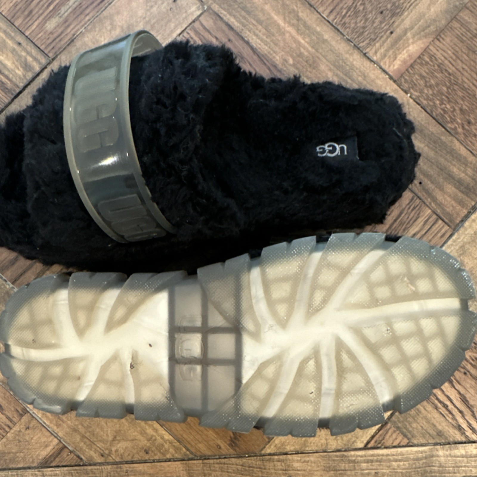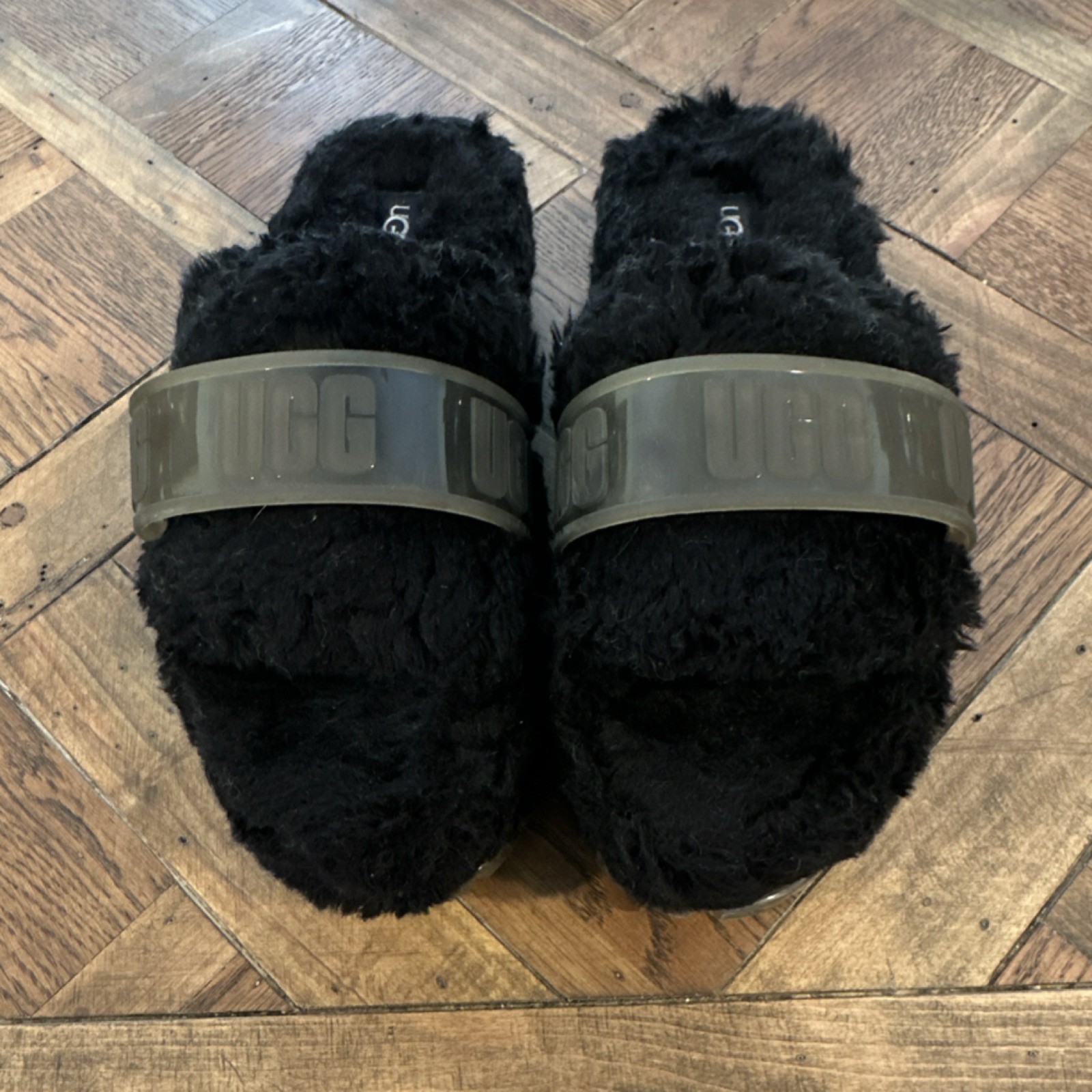 как выглядит UGG Black Fur Slide Slippers Logo Slip On US 9 UK 7 EU 40 MPN 1131971 фото