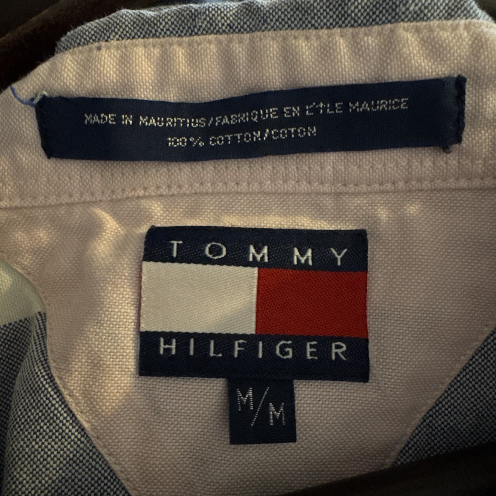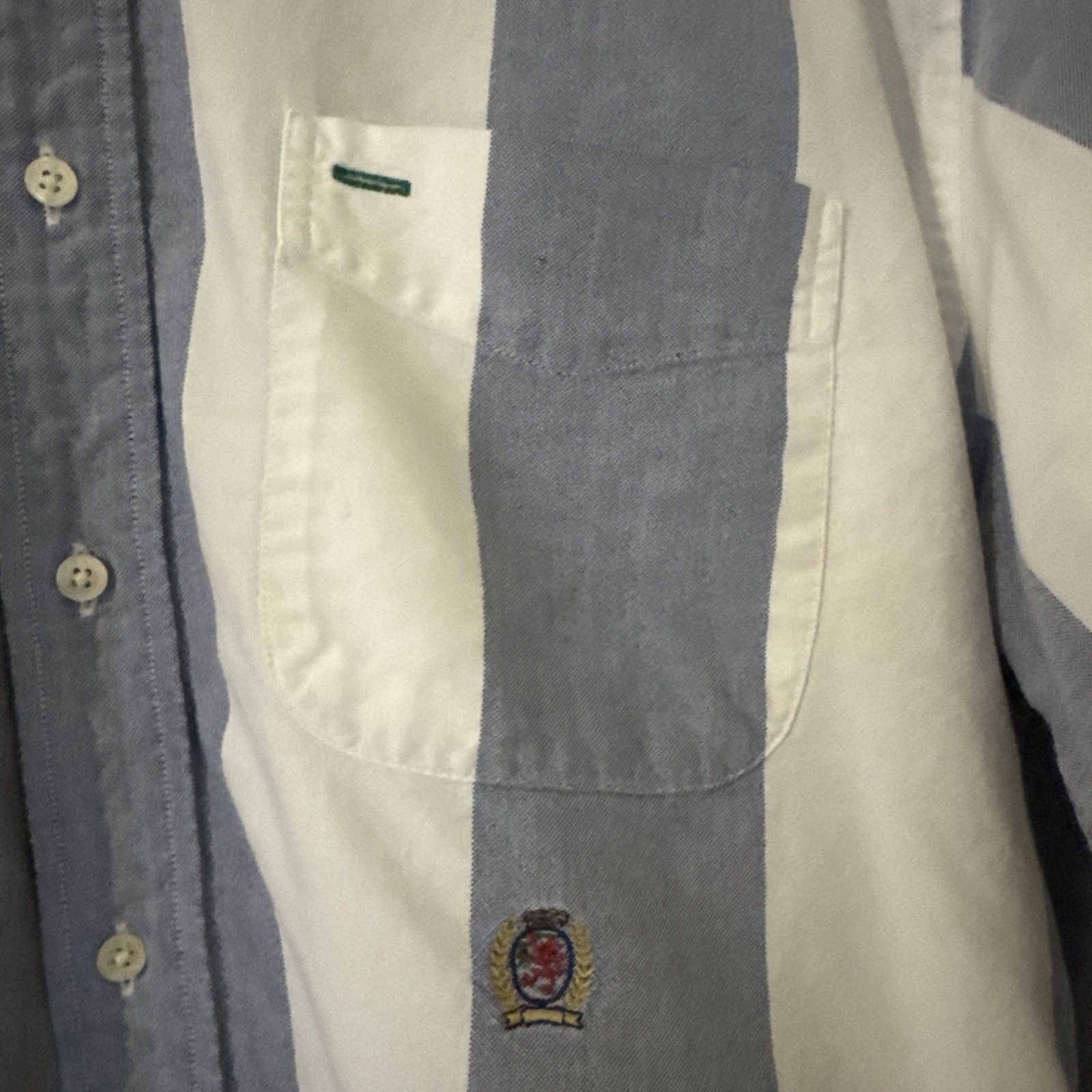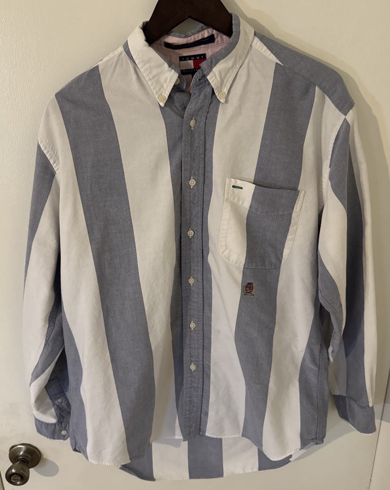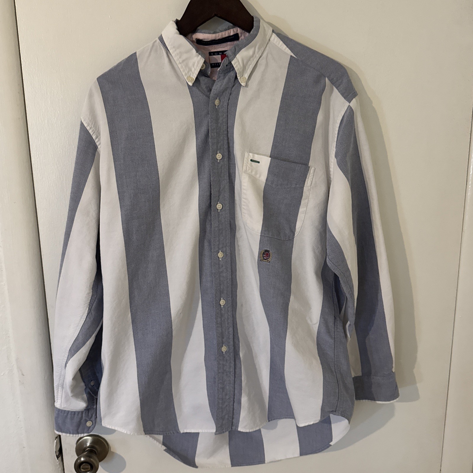 Tommy Hilfiger Men s Medium Long Sleeve Button Up Blue White Crest 100 Cotton