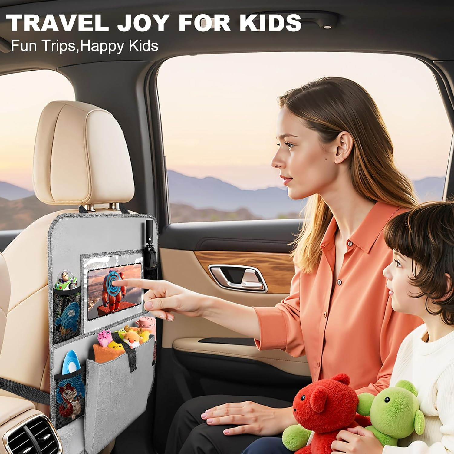Car Backseat Organizer with Tablet Holder, 6 Storage Pockets Seat Back Protector