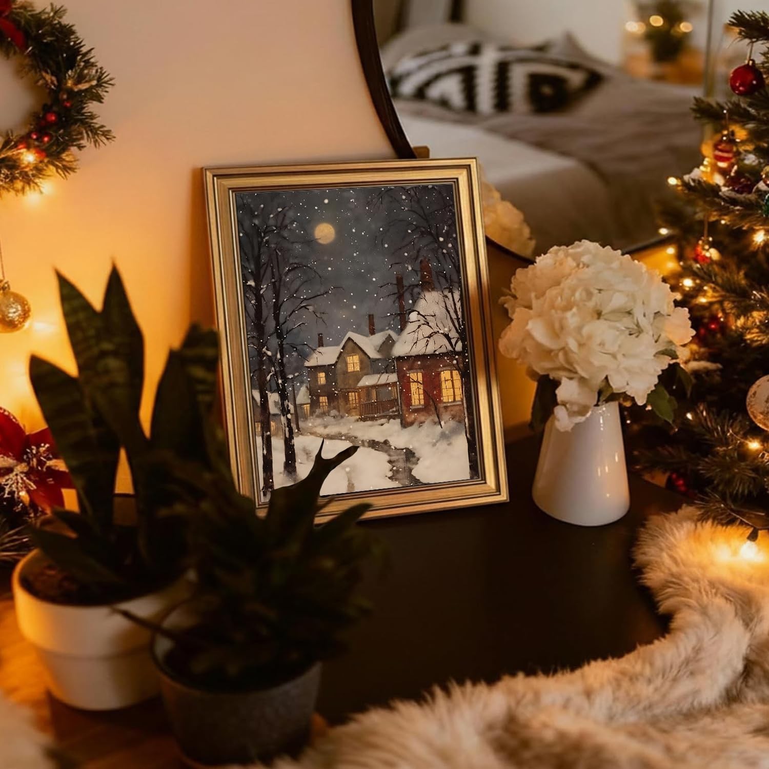 Vintage Christmas Canvas Wall Art Poster Set of 8, Santa Christmas Tree Snowm...