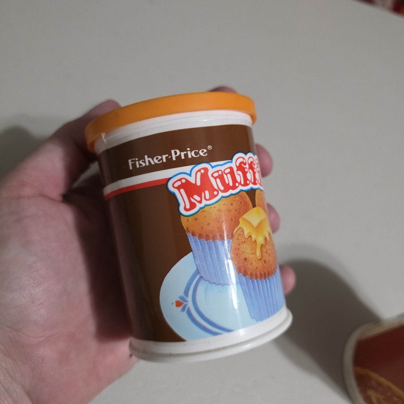 как выглядит Vtg 1988 87 Fisher Price Fun Play Food Lot Of 2 Muffin Pizza Sauce Tin Container фото