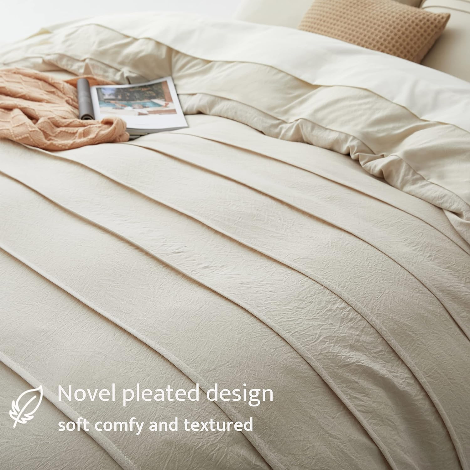Beige Duvet Cover Queen Size - Pleated Queen Duvet Cover, 3PCS Soft and Breathab