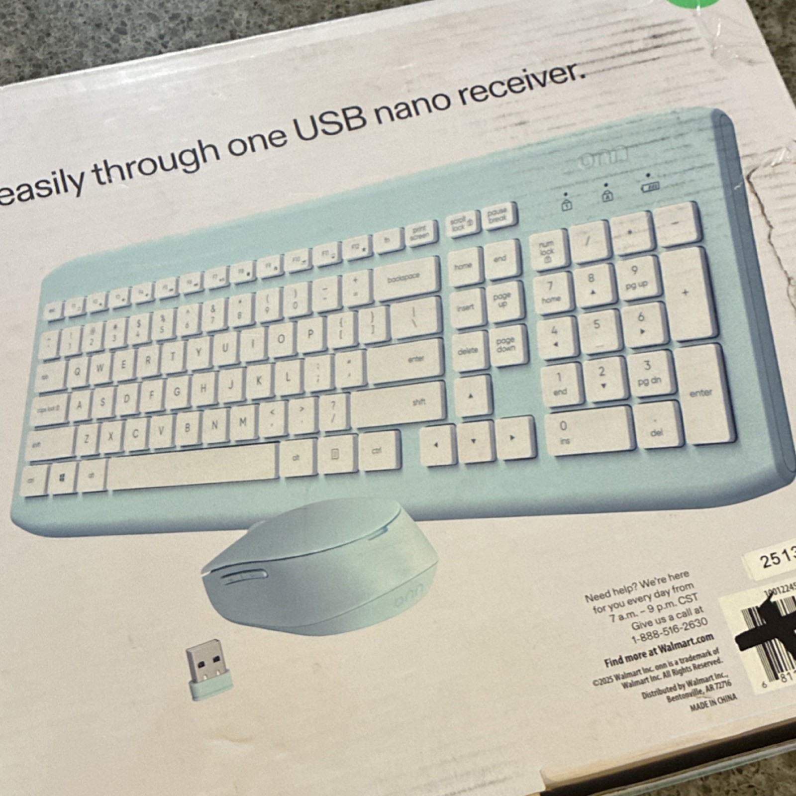 ONN Wireless Keyboard , USB Receiver, Full-Size, Blue, no mouse