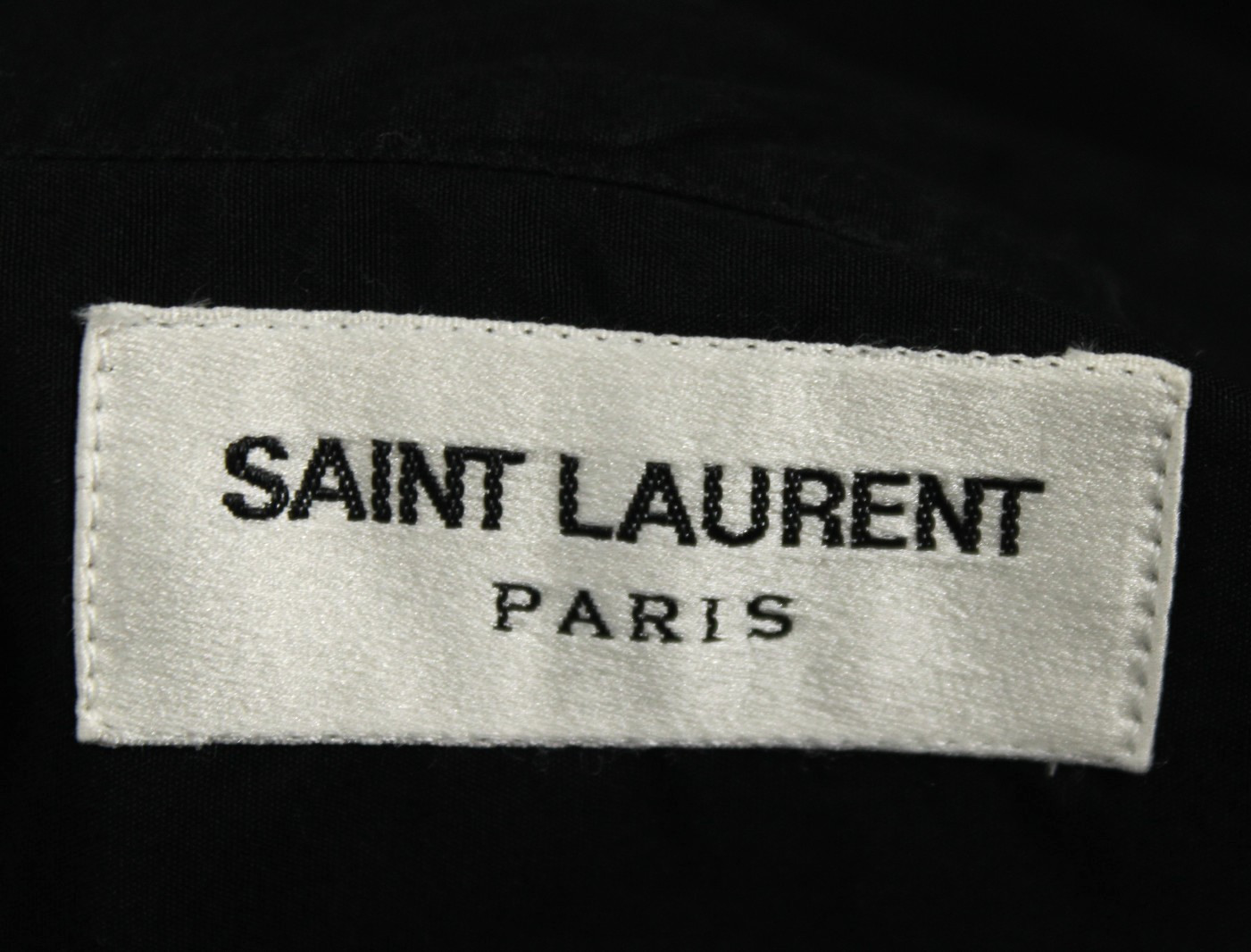 как выглядит SAINT LAURENT Black Cotton Poplin Mens Button-Down Dress Shirt 37 14.5 фото