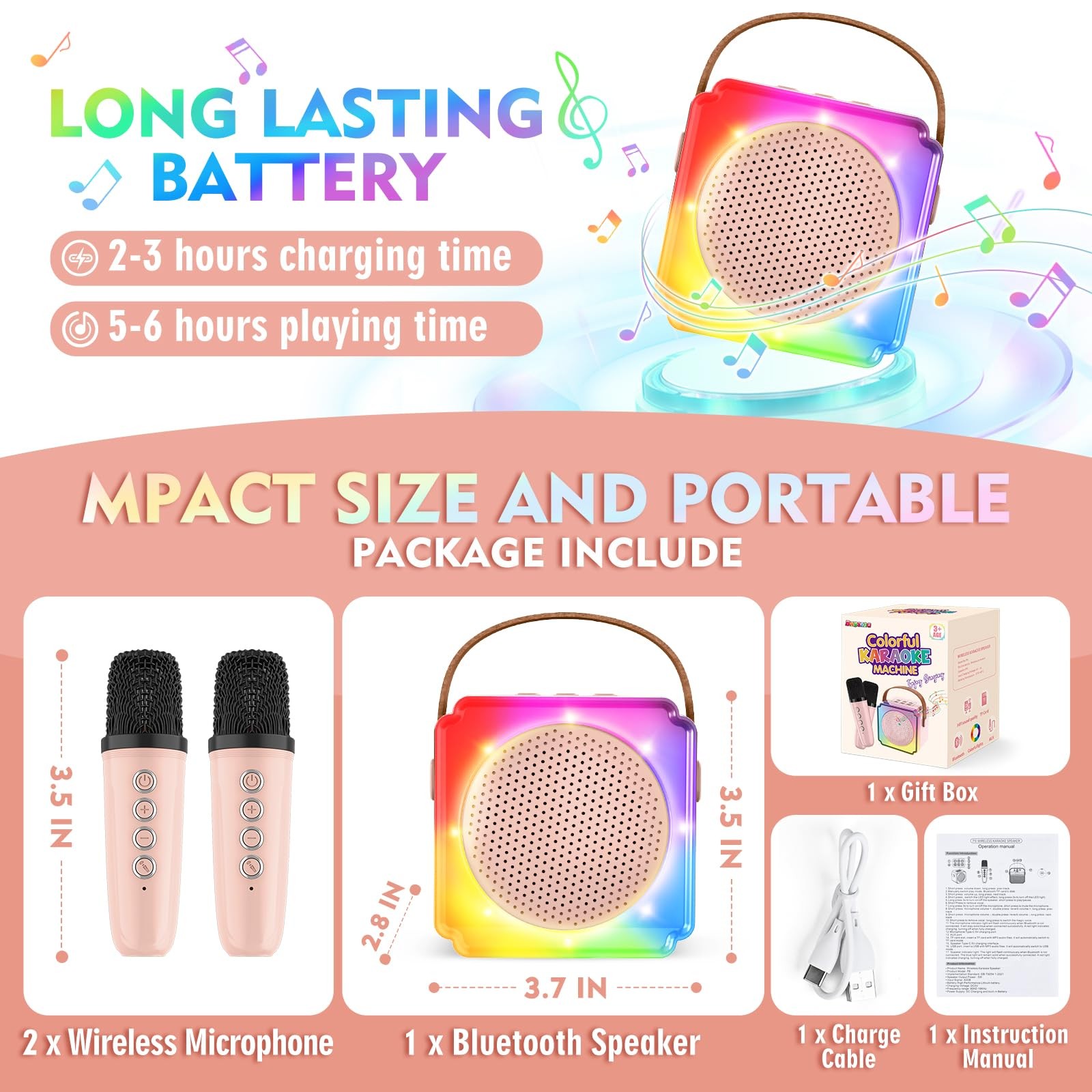 Karaoke Machine for , Portable Bluetooth Speaker with 2 Wireless Microphones,...