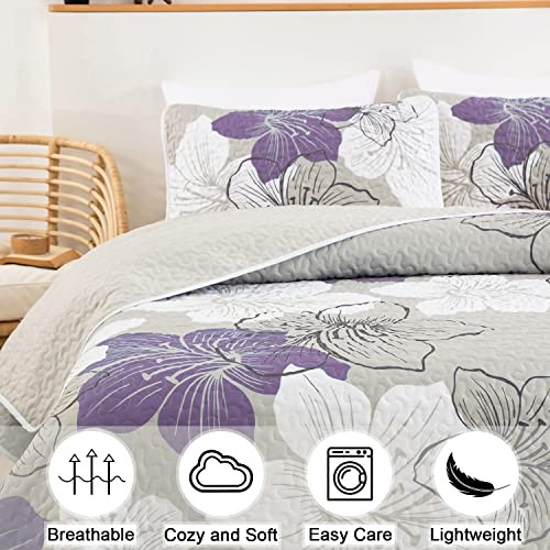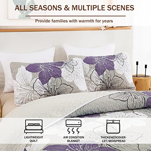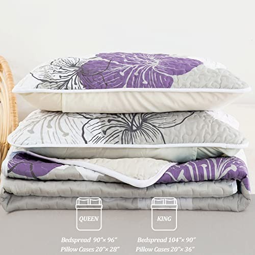 3 Pieces Quilt Set King Purple Lily Pattern King 104x 90 Purple Flower