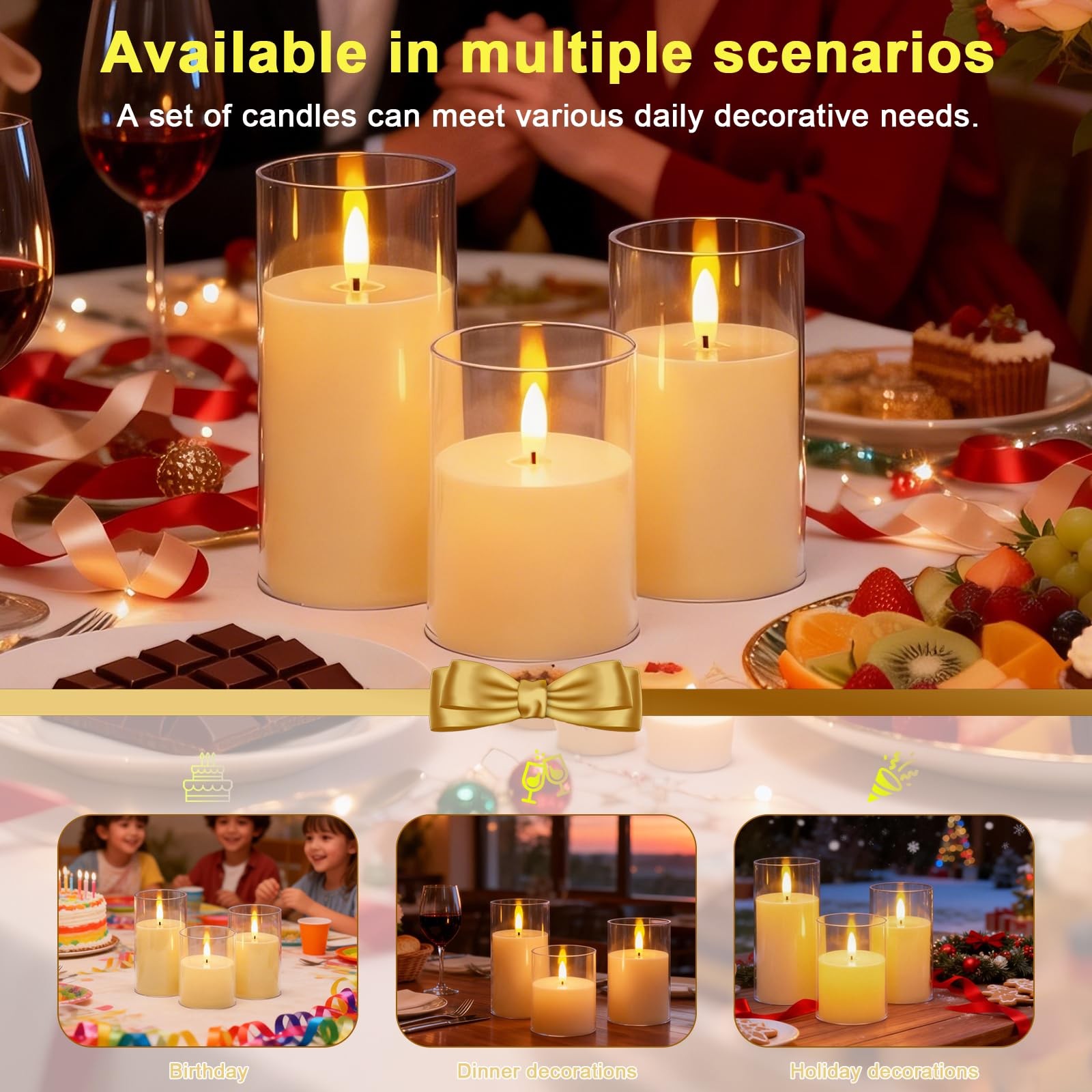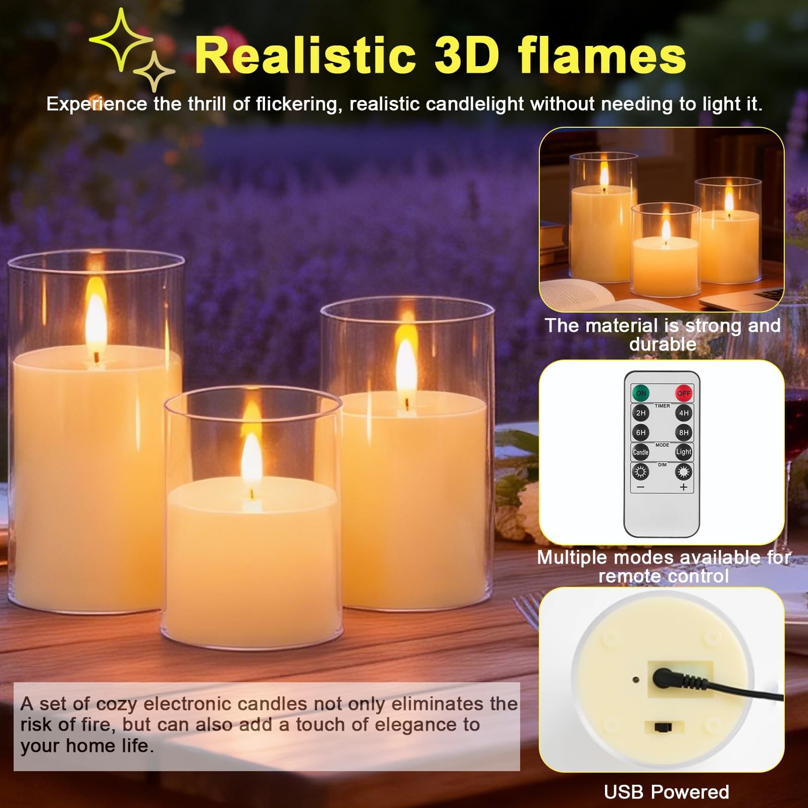 3-Pack Rechargeable Flameless Candles with Remote Control and Timer Function,...