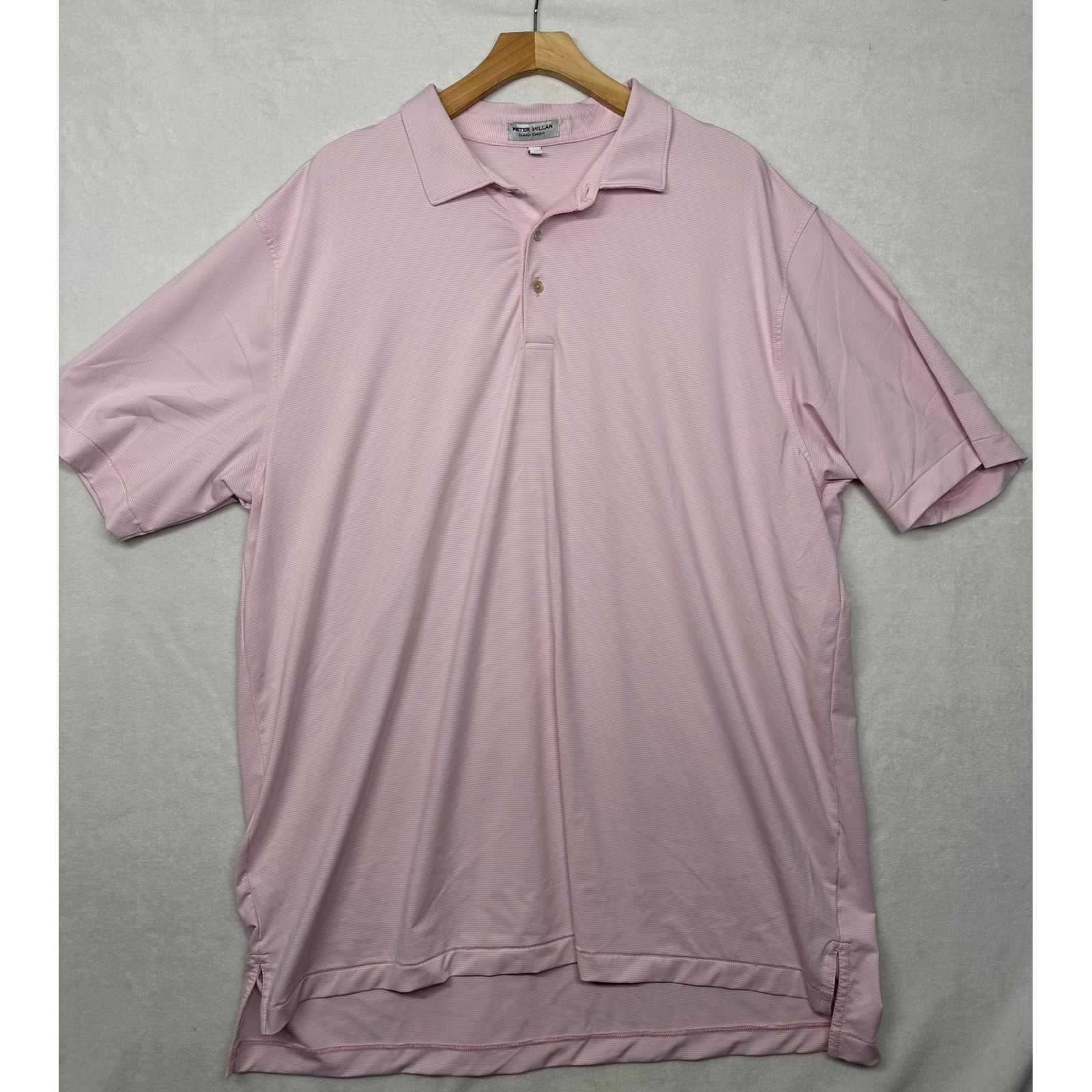 Peter Millar Summer Comfort Mens XXL Pink Stripe Performance Golf Polo Shirt