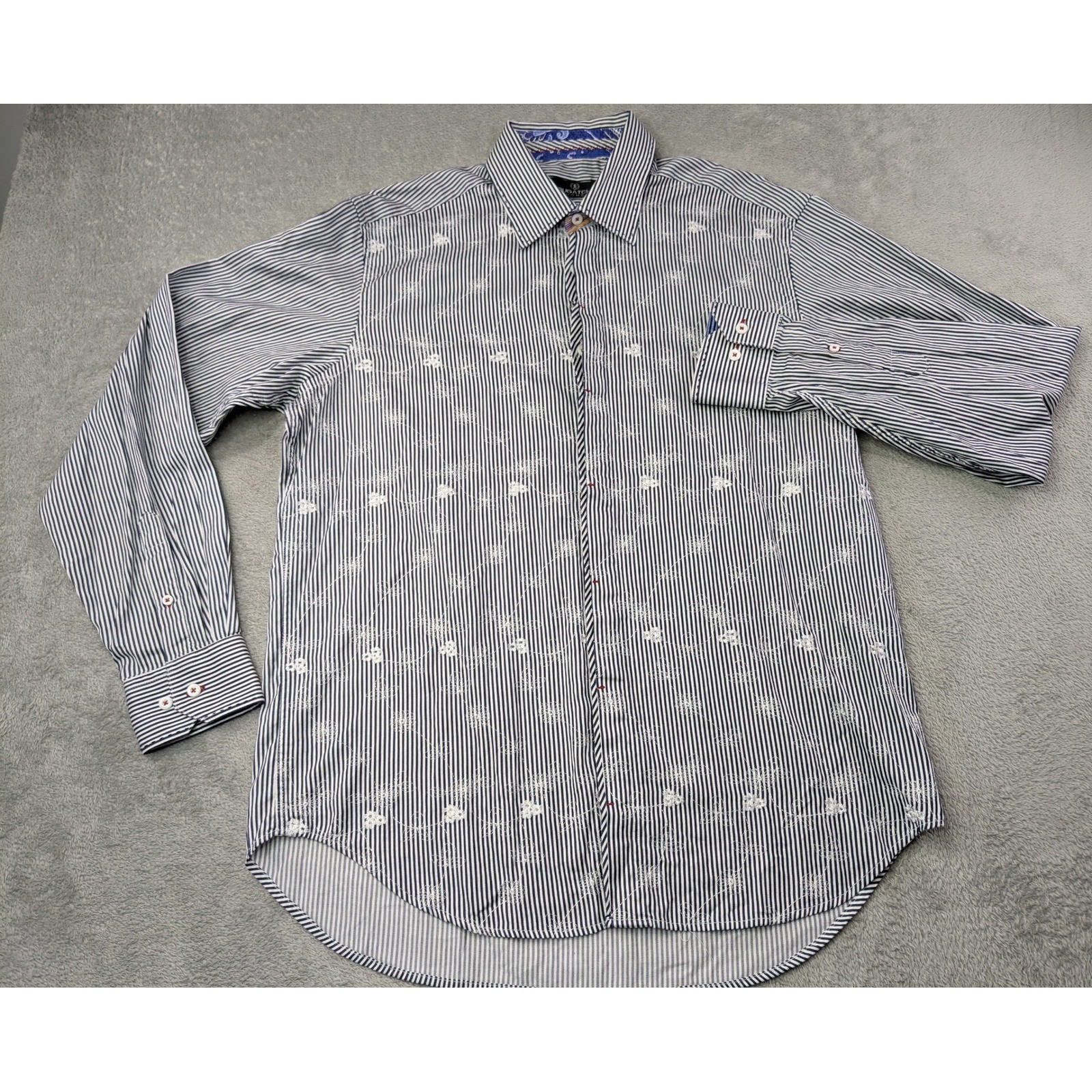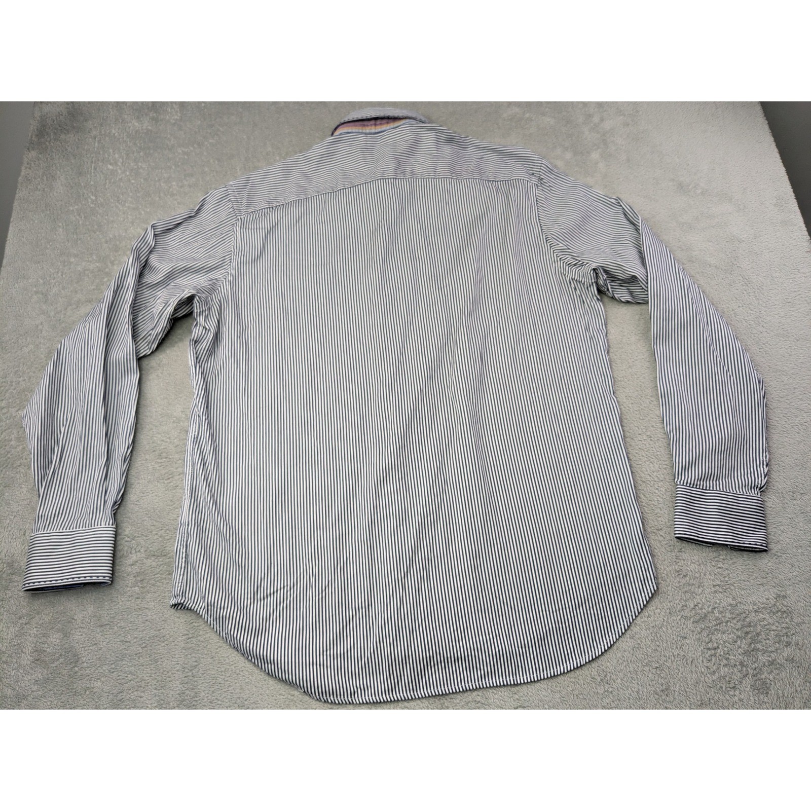 как выглядит Bugatchi Uomo Mens Large Striped Long Sleeve Button Down Shirt Flip Cuff фото