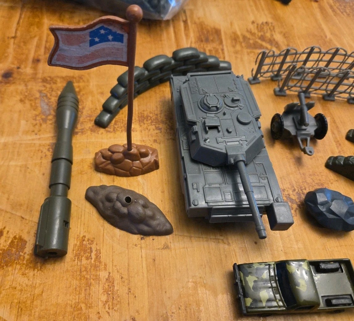 как выглядит 2" Green Army Men Accessories Tanks, Barricades, Stones, Truck, Flag Ee-43 фото
