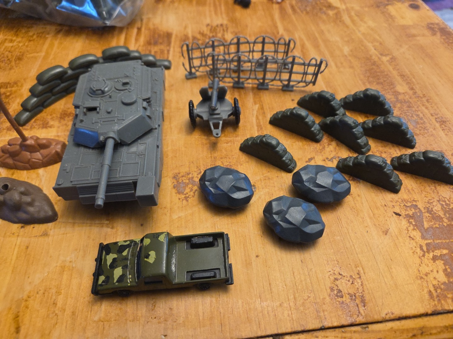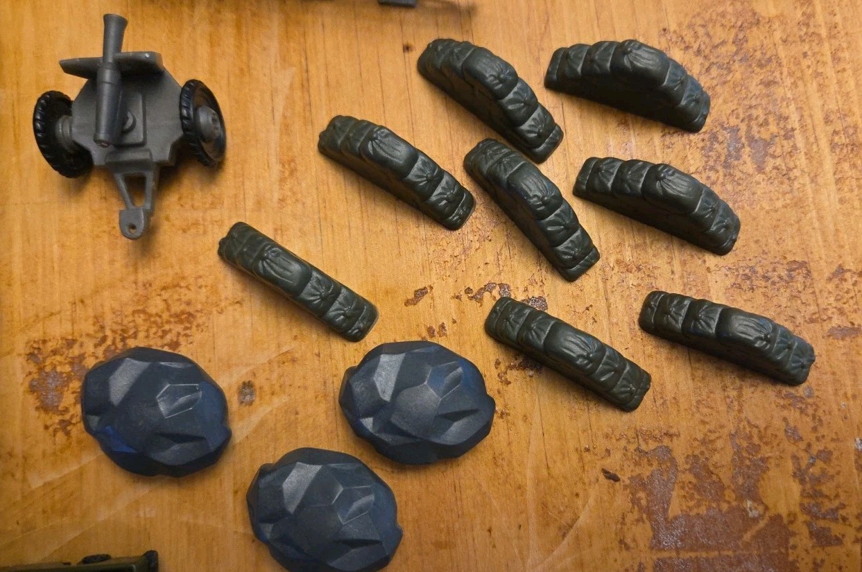 2 Green Army Men Accessories Tanks, Barricades, Stones, Truck, Flag Ee-43