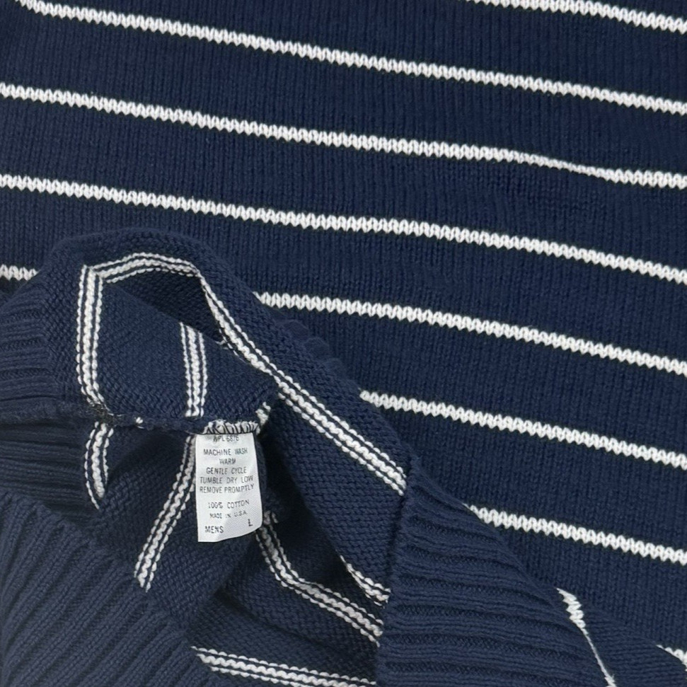 VTG Brooks Brothers 100 COTTON Navy Blue White Stripe Knit Sweater USA Men s L