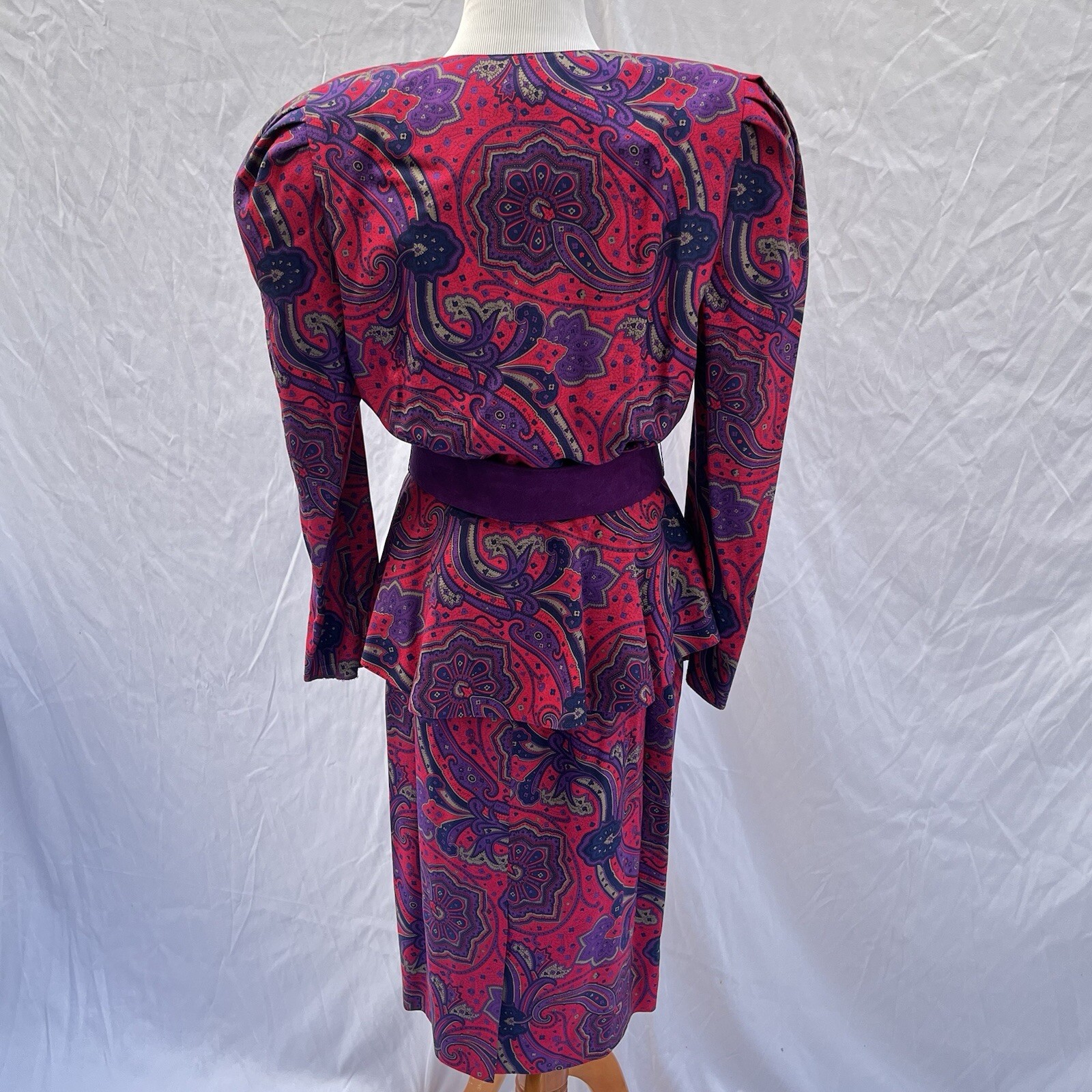 как выглядит St GILLIAN Kay Unger Vtg 80s Silk Wool 3-Piece Dress 14 Colorful Paisley w/Belt фото