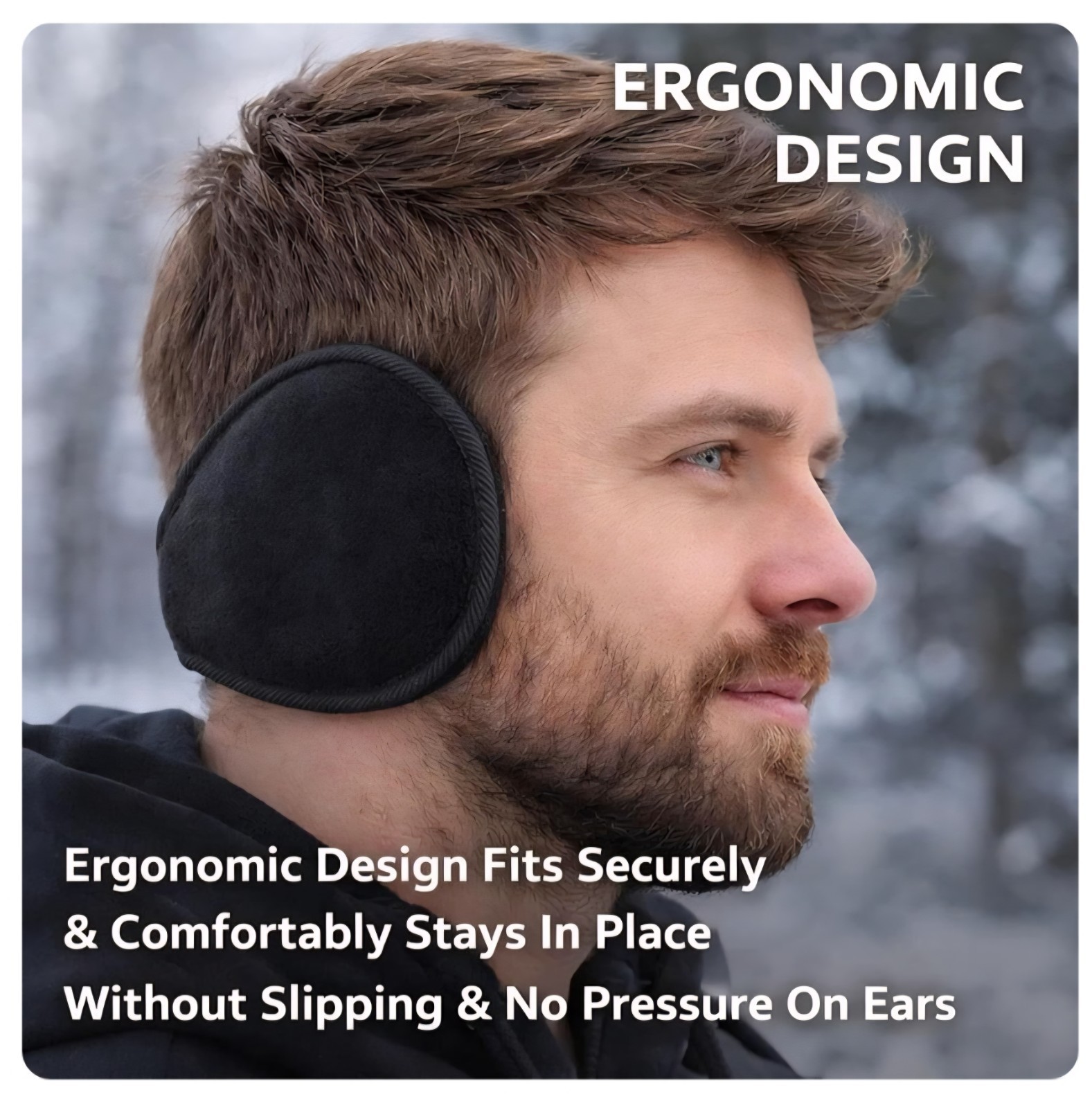 Black Fleece-Lined Behind-the-Head Earmuffs, Adjustable, Brand New In Package