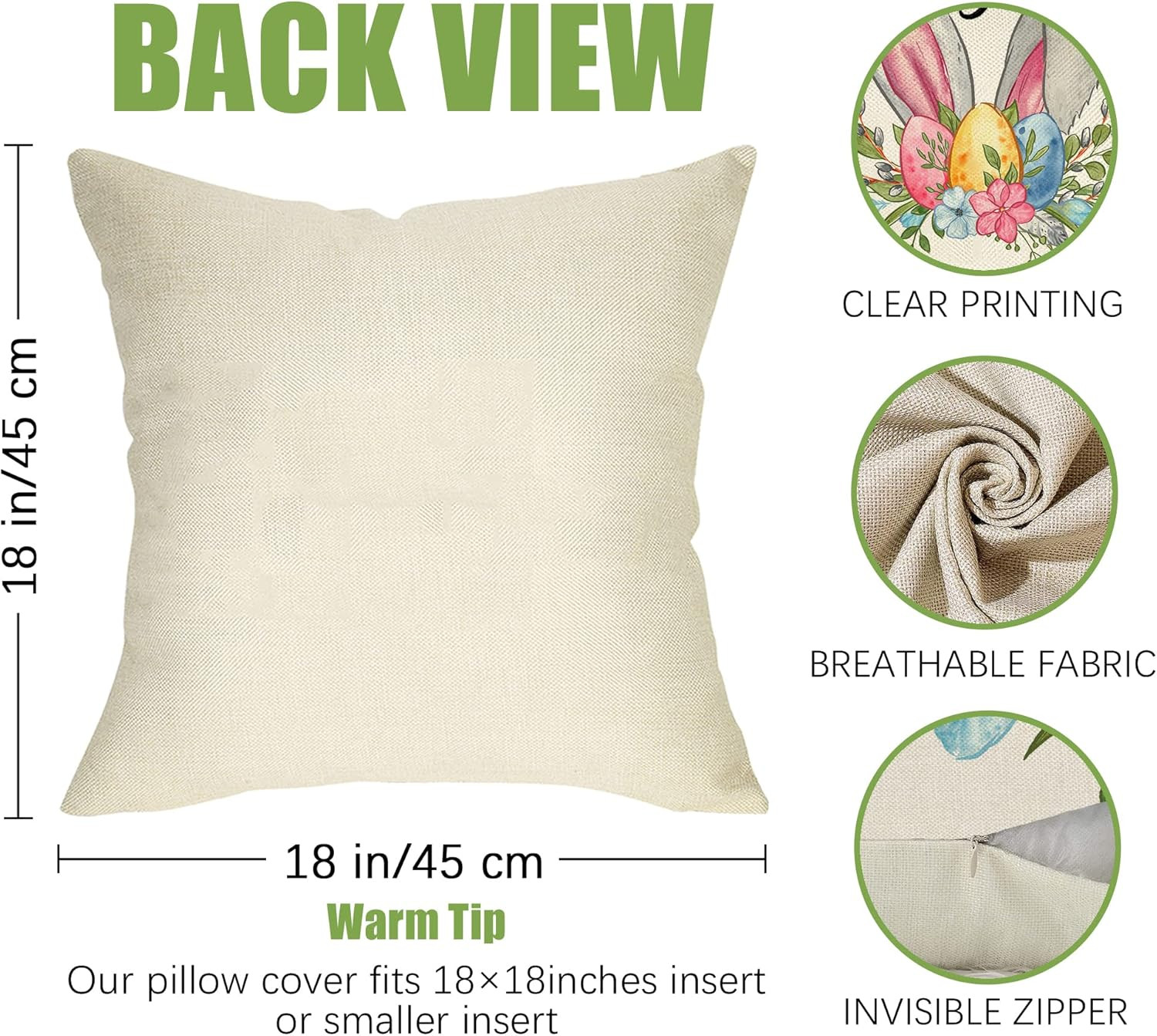 Happy Easter Eggs Bunny Decorative Throw Pillow Cover 18X18 Set of 4, Religious