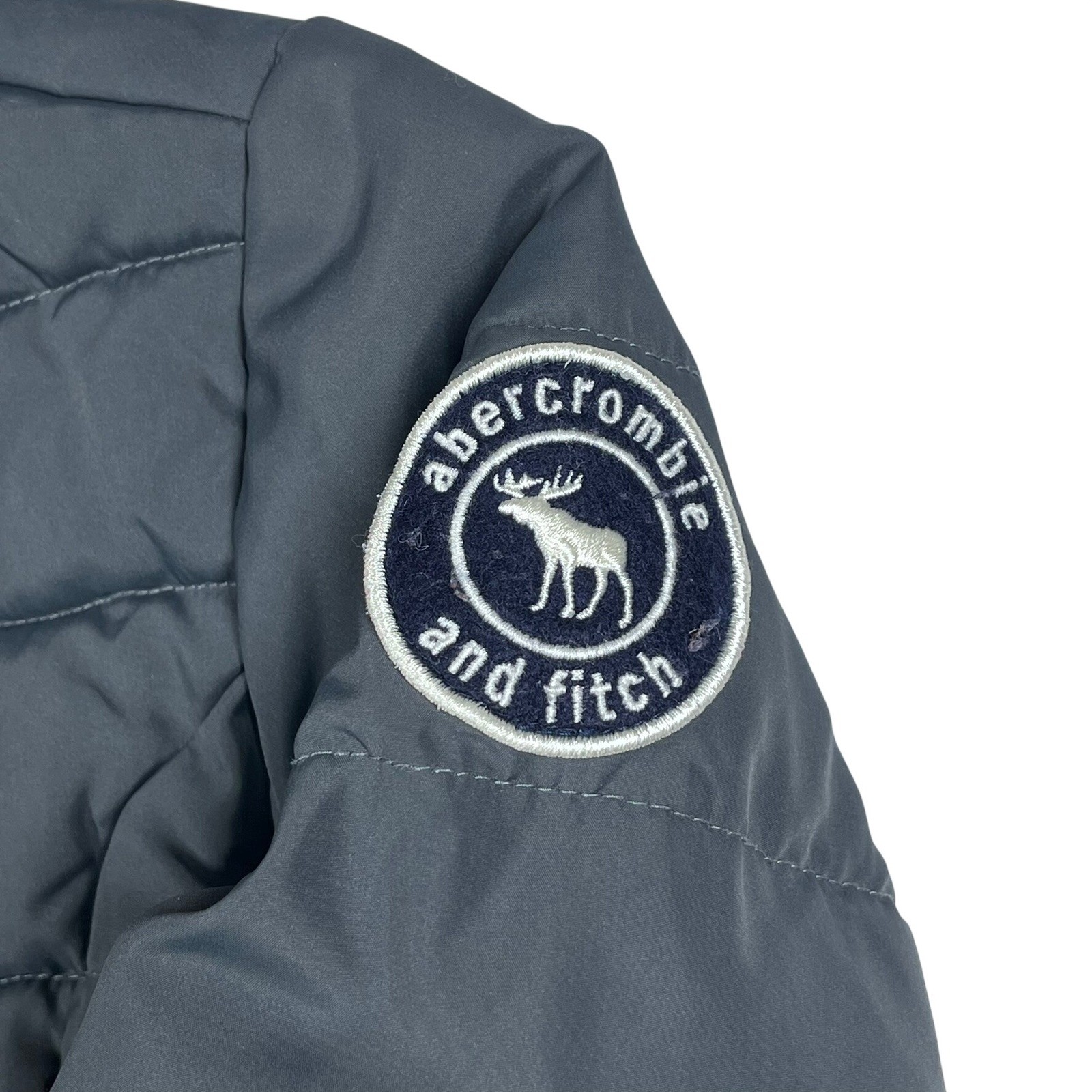 Abercrombie Kids Black Hooded Puffer Jacket Size S Moose Logo Patch Quilted Coat
