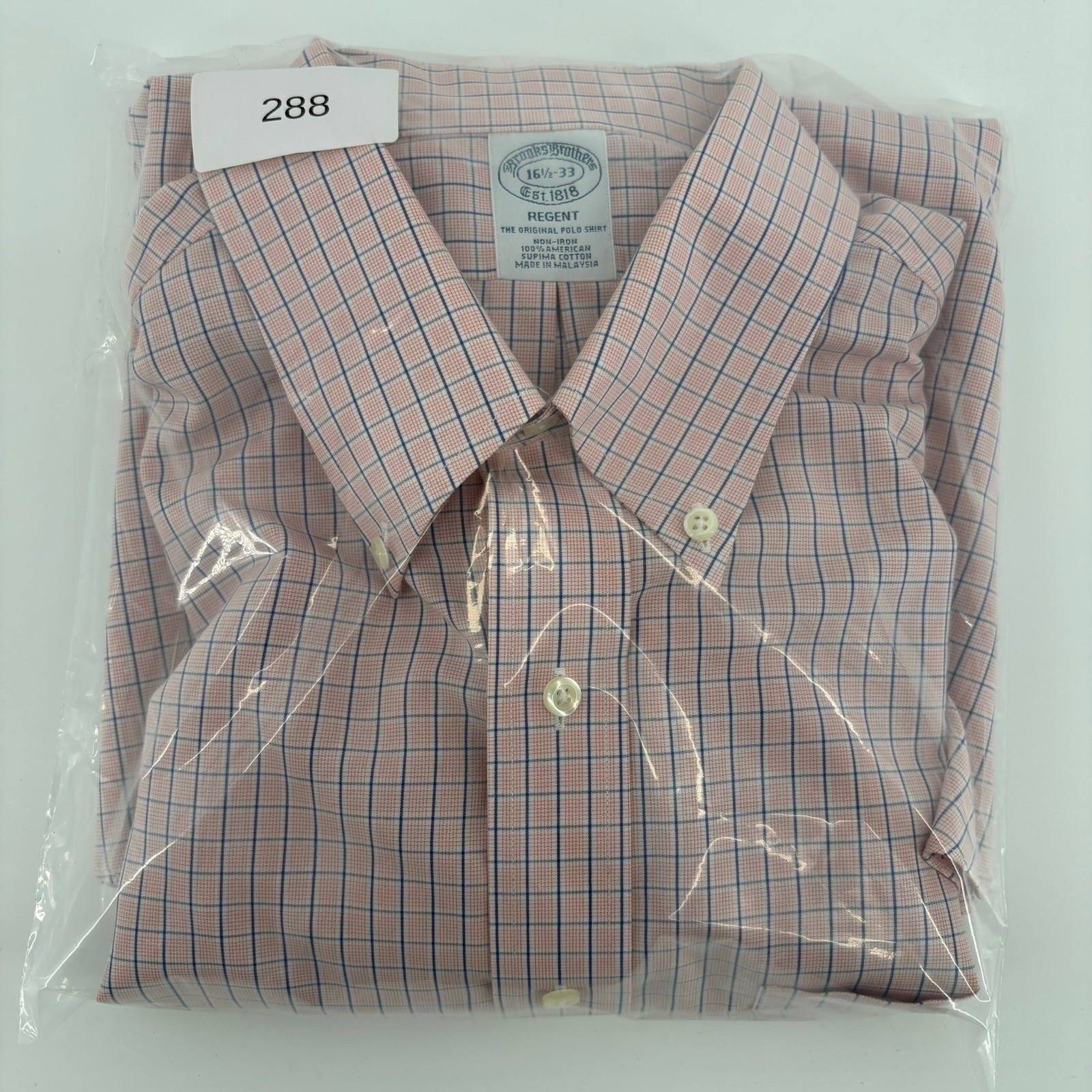 Brooks Brothers Regent Dress Shirt 16.5 33 Non-Iron Supima Cotton Pink Navy