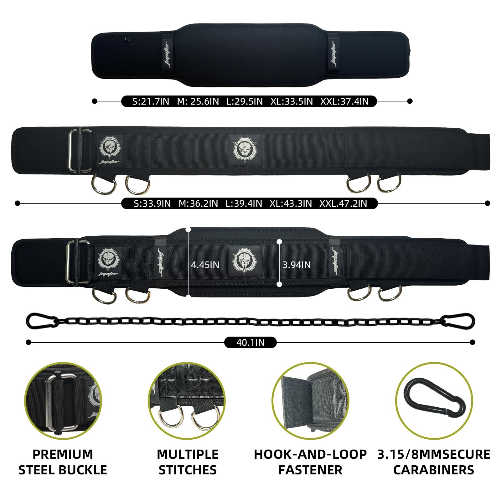 2-in-1 Weightlifting Belt Dip with Chain for Added Medium, Black/Grey